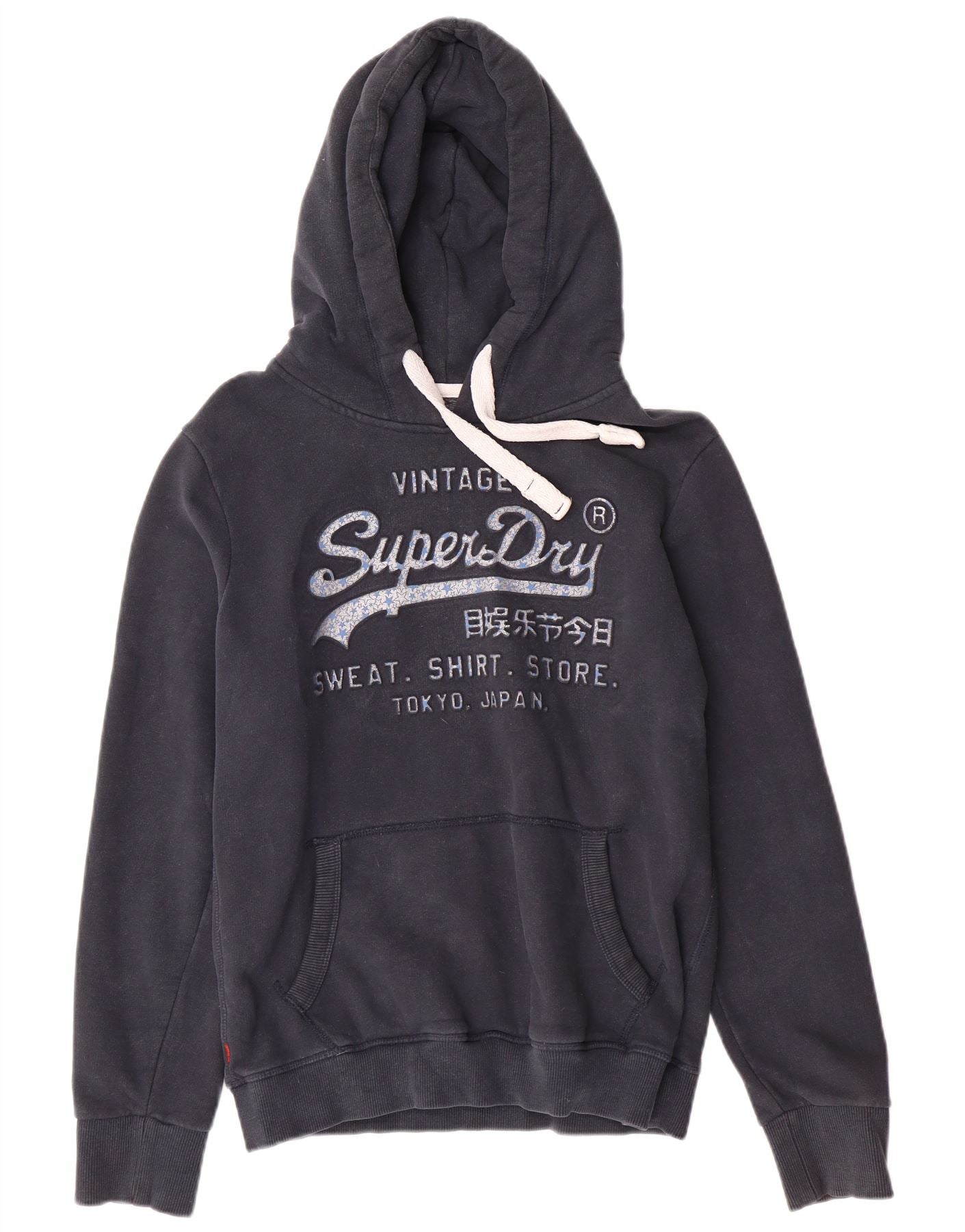 SUPERDRY Jersey con capucha gráfica para mujer Reino Unido 44 Grande Algodón azul marino
