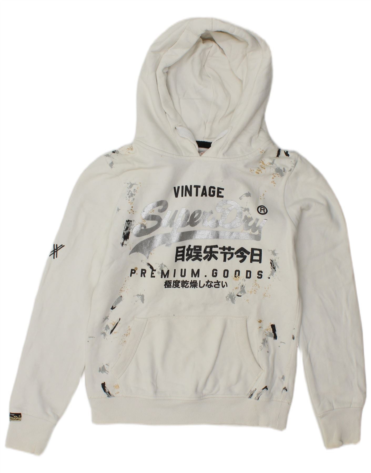 SUPERDRY Jersey con capucha gráfica para mujer UK 6 XS Algodón blanco