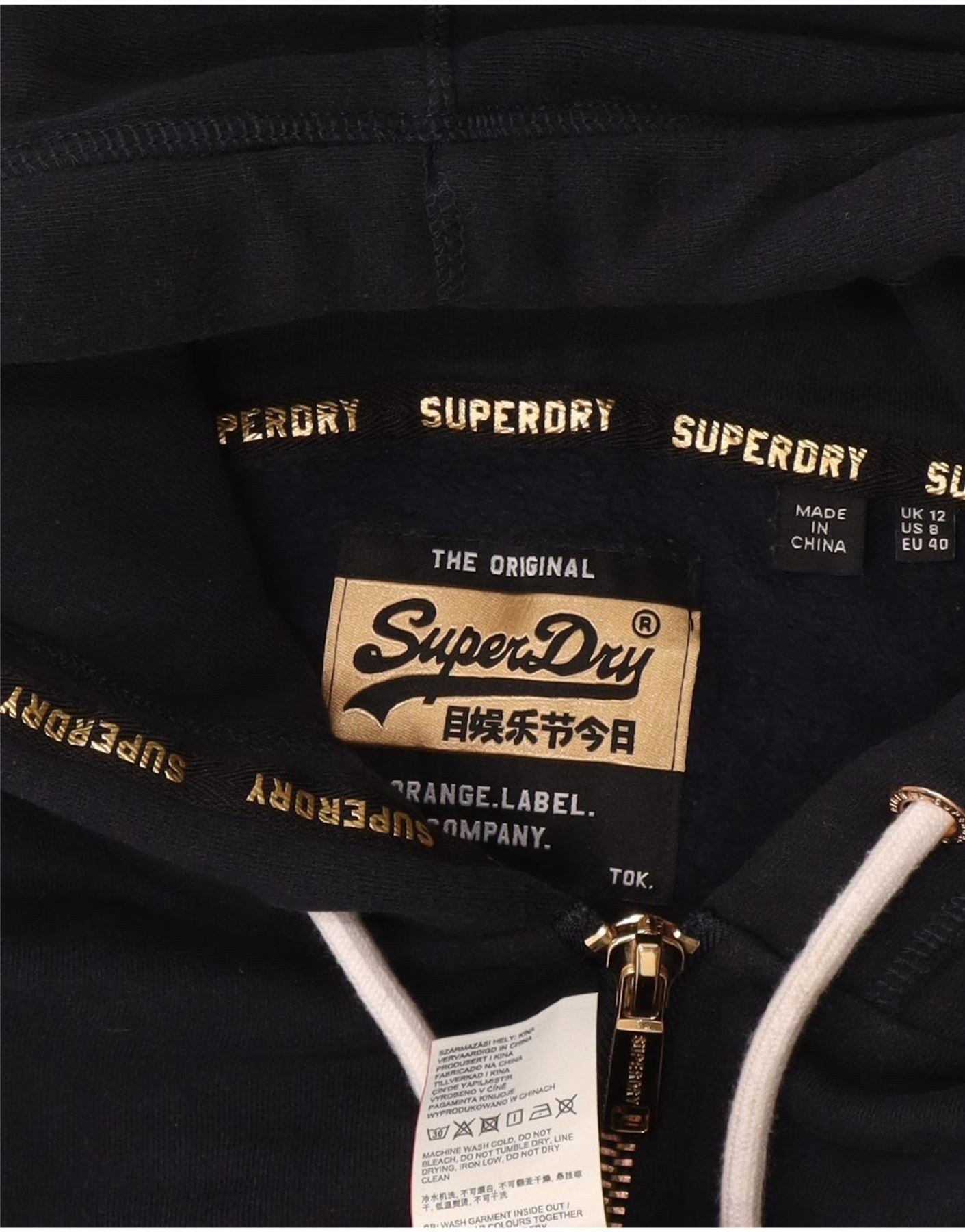 Superdry Sudadera con capucha y cremallera gráfica para mujer Reino Unido 40 Algodón azul marino mediano