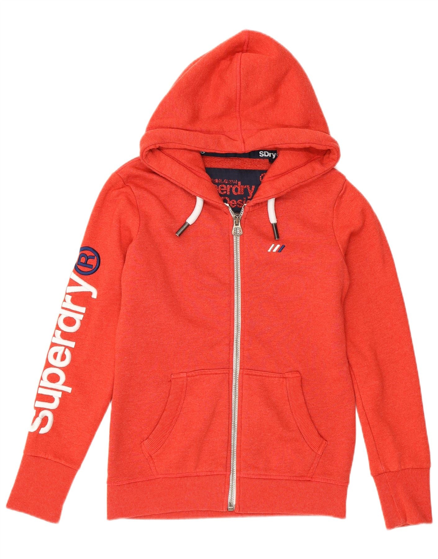 Home > De las mujeres > Ropa Depop > SUPERDRY Suéter con capucha y cremallera gráfica para mujer UK 8 Small Orange Cotton