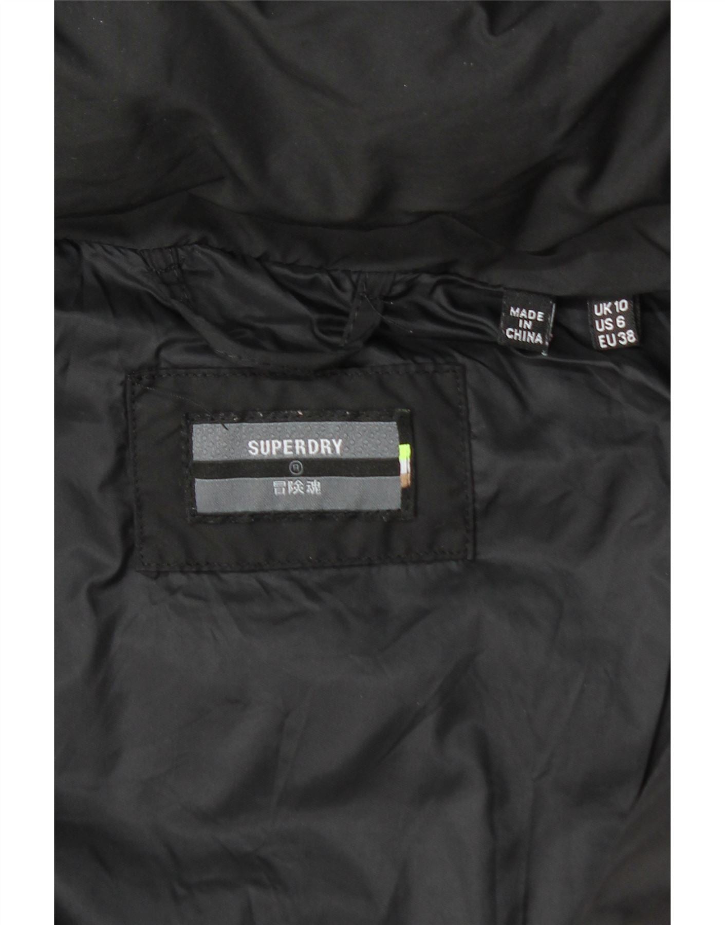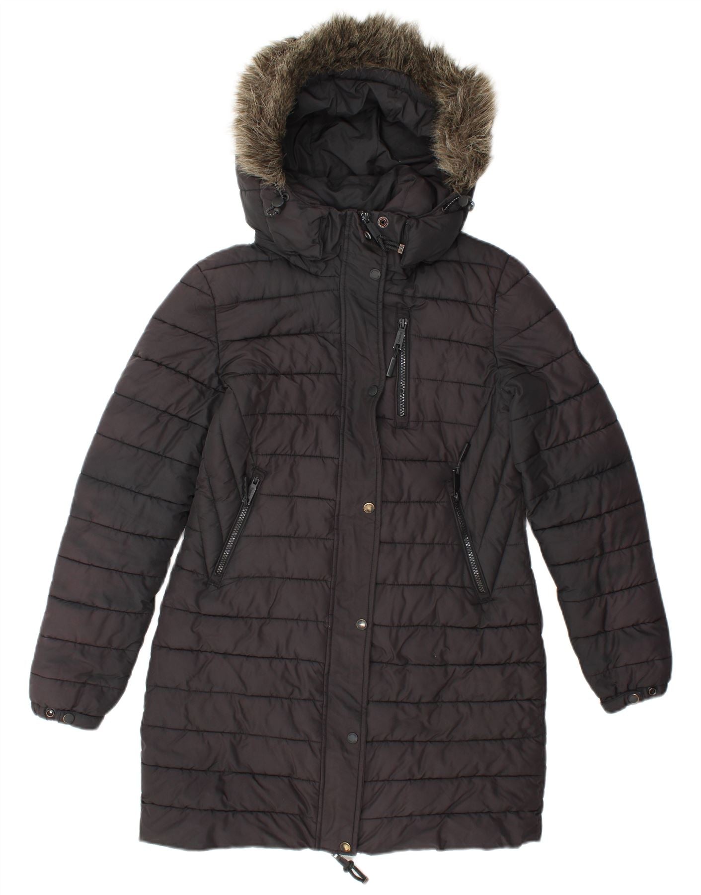 SUPERDRY Abrigo acolchado con capucha para mujer UK 40 Small Poliéster negro