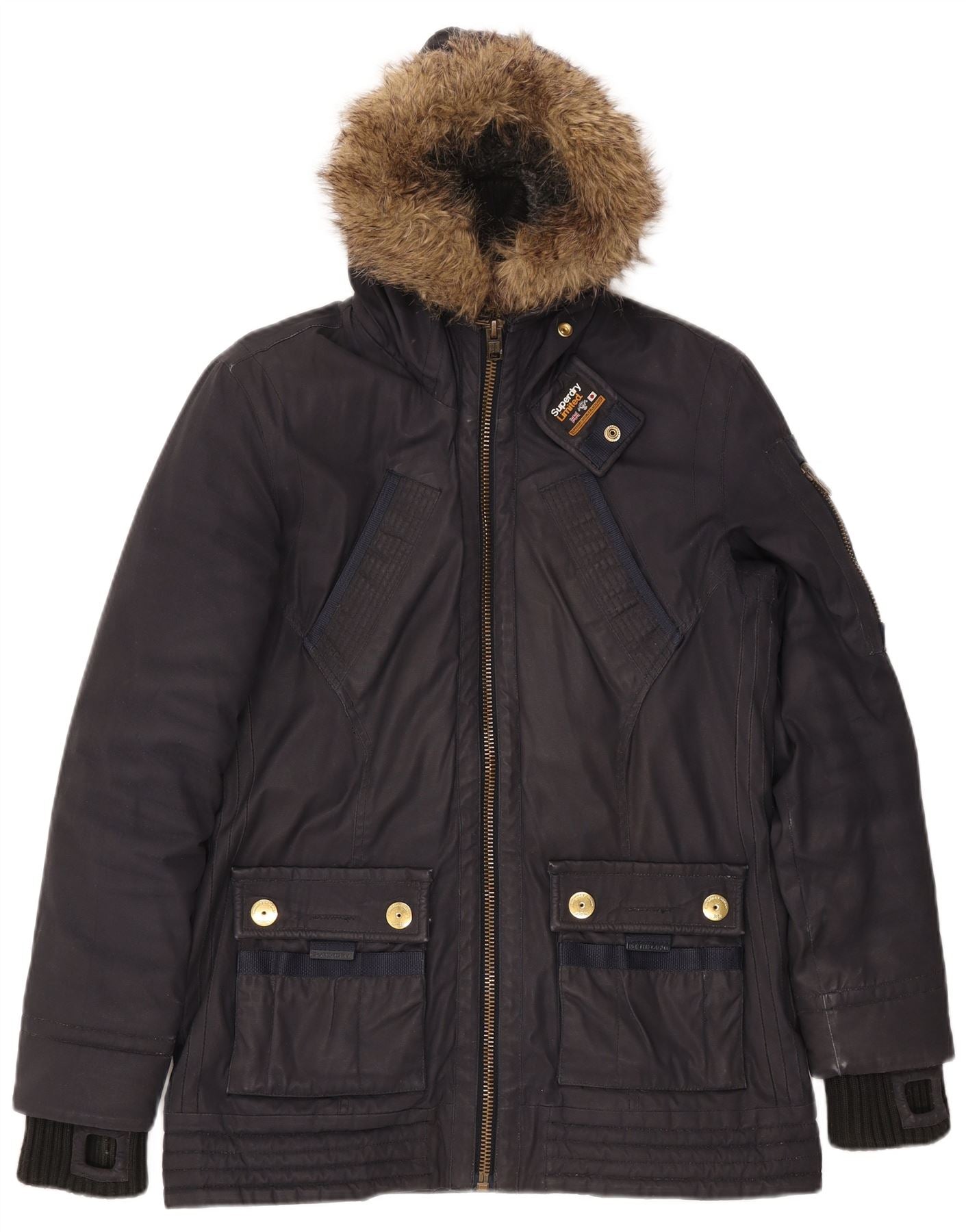 SUPERDRY Chaqueta parka con capucha para mujer UK 46 Large Algodón azul marino