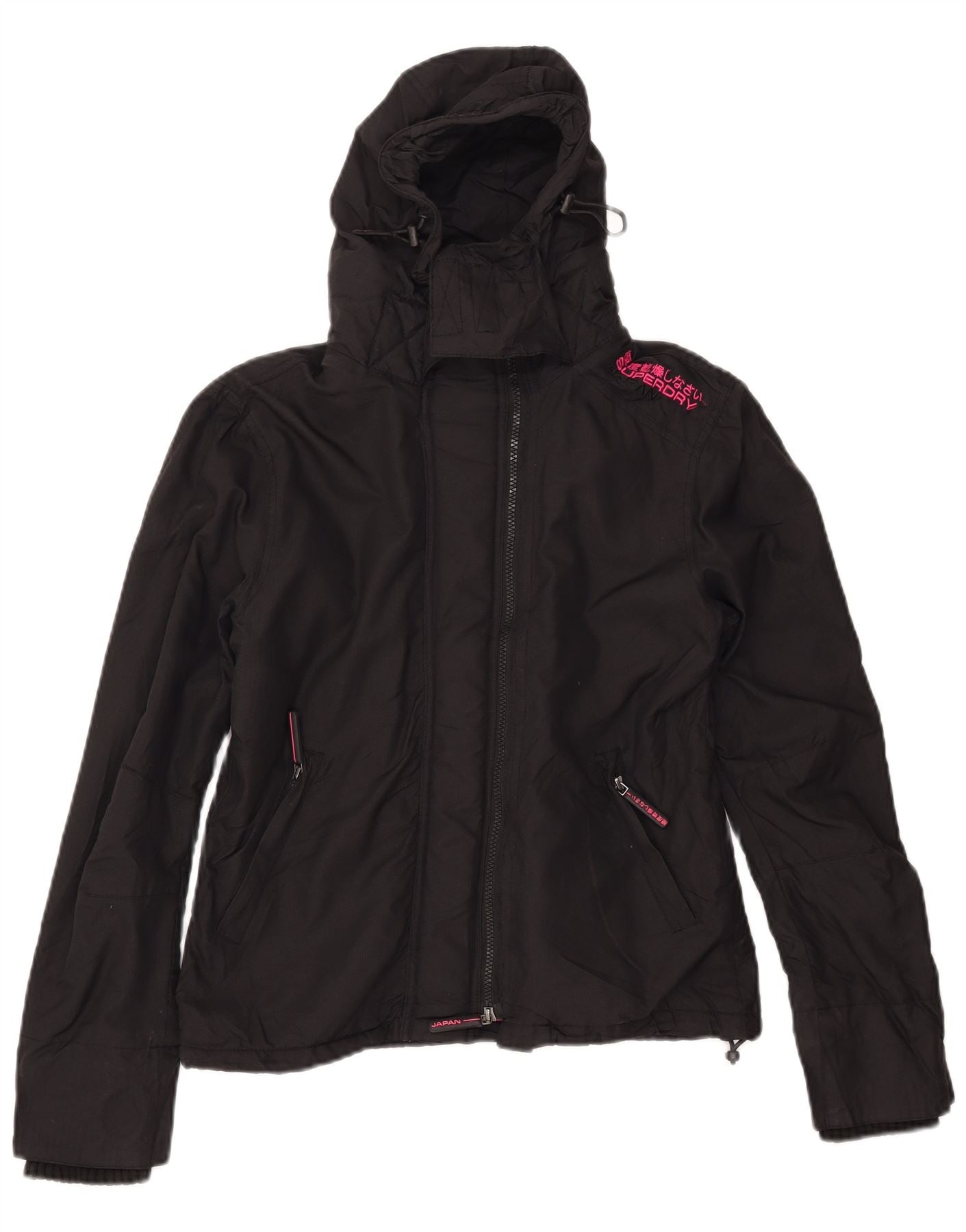 - Descripción de IA: Esta chaqueta cortavientos de Superdry para mujer está confeccionada con nailon tejido negro duradero y ofrece un acabado suave y práctico. Cuenta con cuello alto y cierre de cremallera completa para protección. Las mangas largas y el corte regular garantizan comodidad. El diseño con capucha añade versatilidad. Los bolsillos con cremallera brindan almacenamiento seguro. Un detalle distintivo del logotipo en rosa añade un toque vibrante. Esta chaqueta es a la vez resistente al viento y al agua, ideal para usar al aire libre.