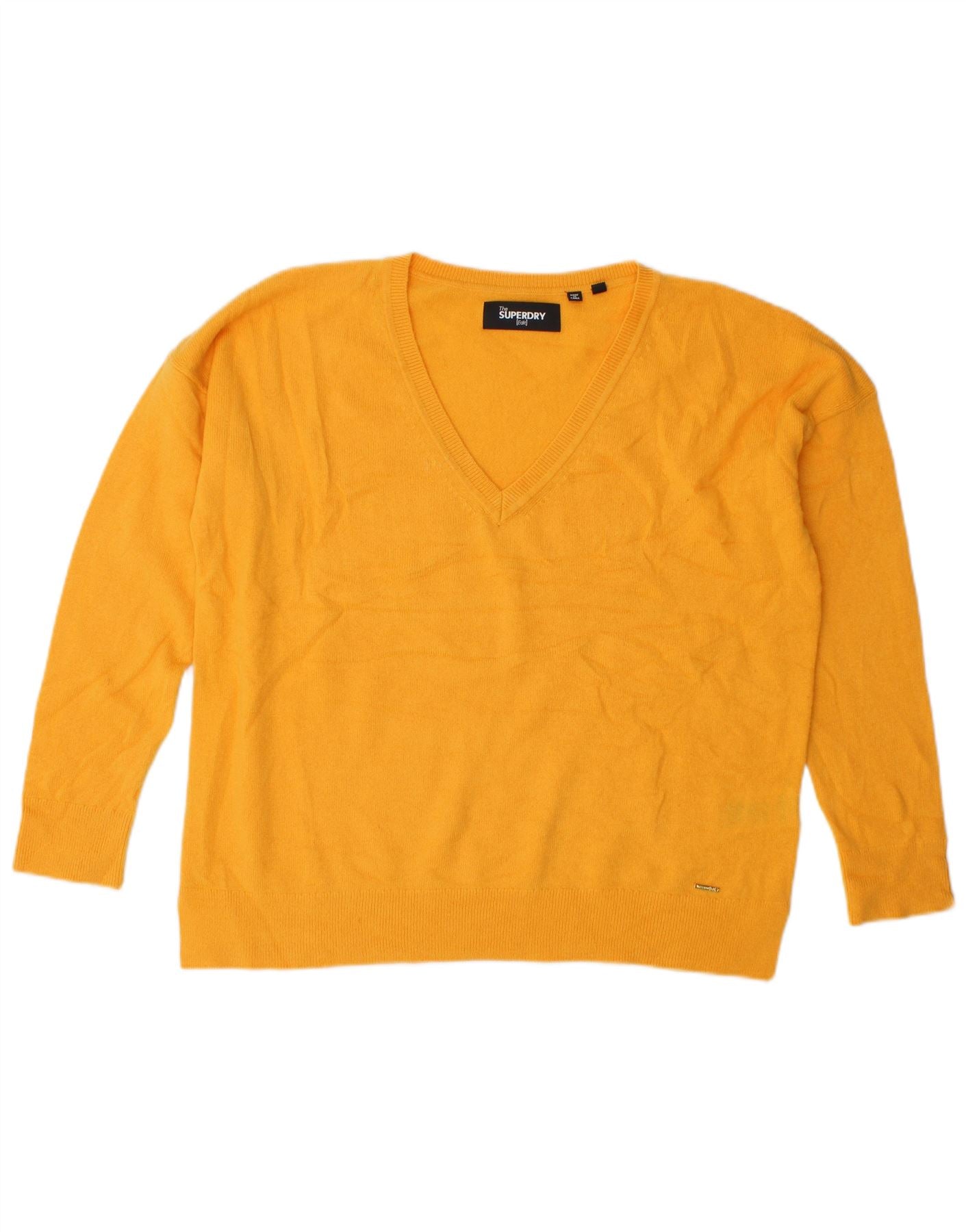 SUPERDRY Suéter tipo jersey de gran tamaño con cuello en V para mujer UK 10 Small Yellow Wool