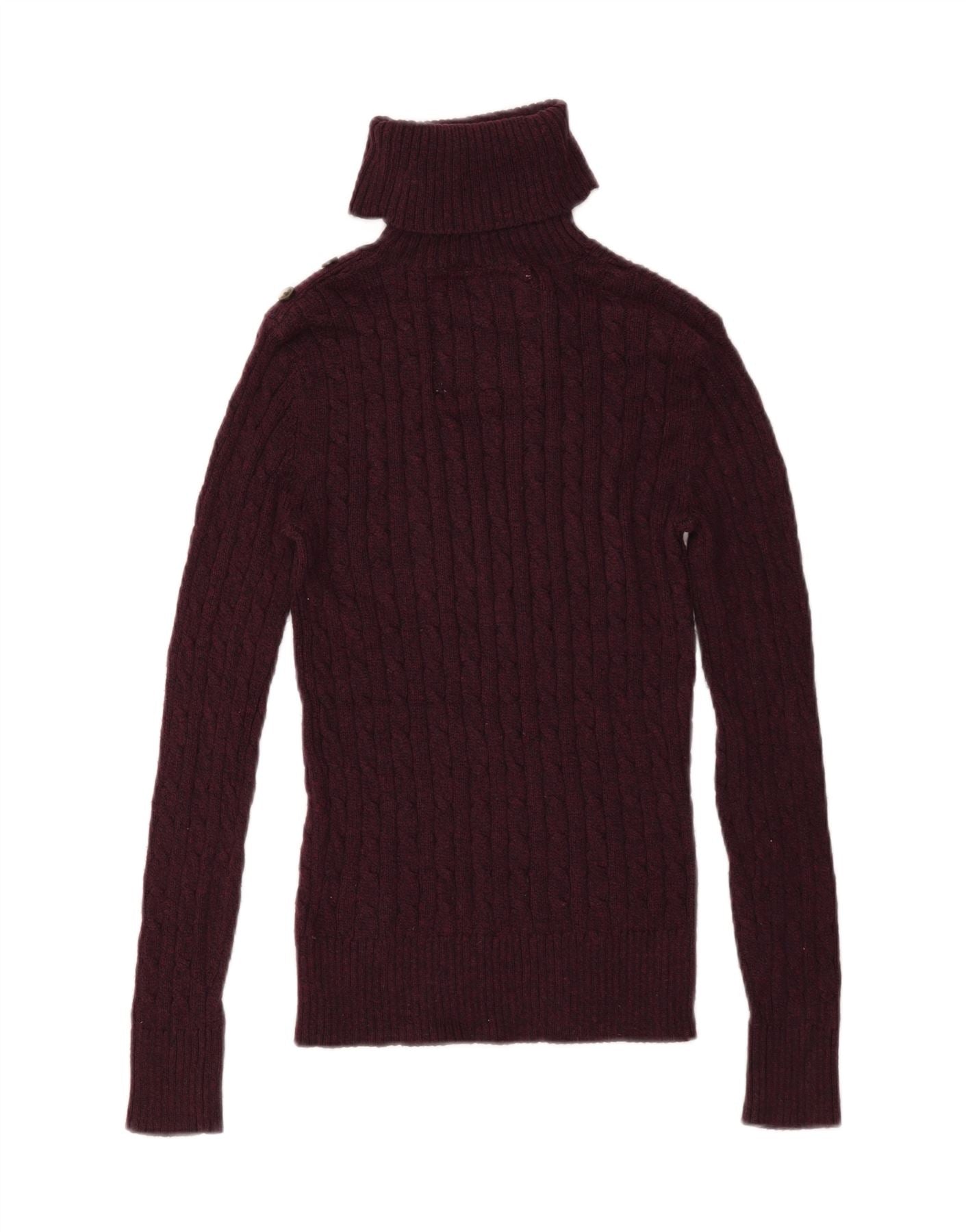 SUPERDRY Suéter tipo jersey con cuello vuelto para mujer UK 10 Small Borgoña Algodón