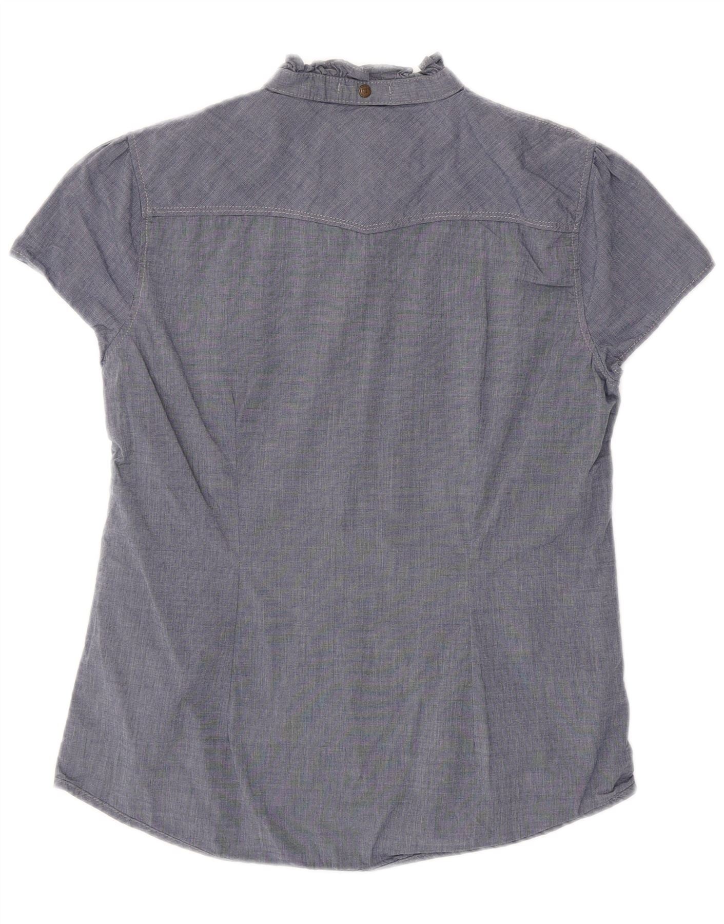 SUPERDRY Blusa camisera con volantes en la parte delantera para mujer UK 40 Azul marino mediano