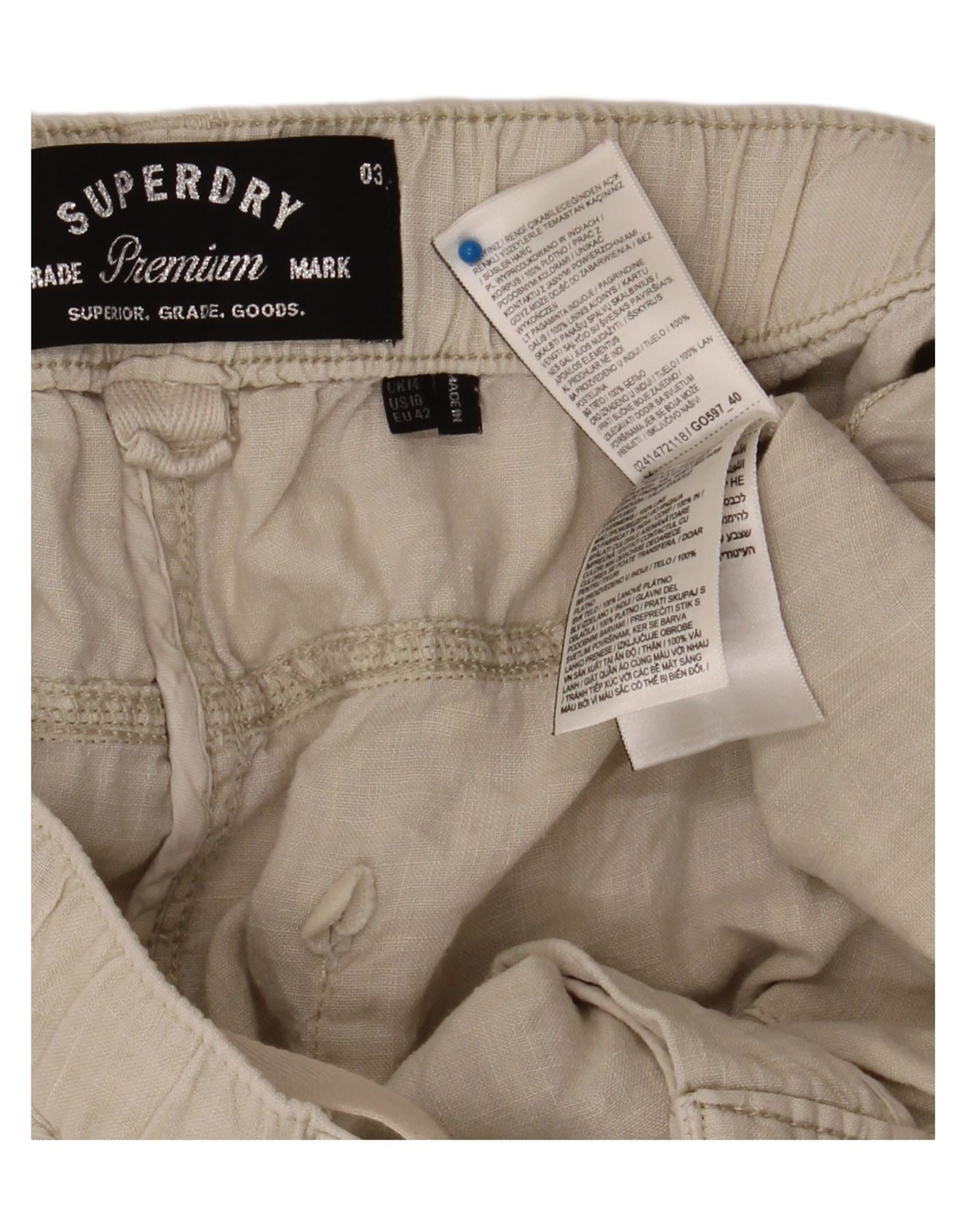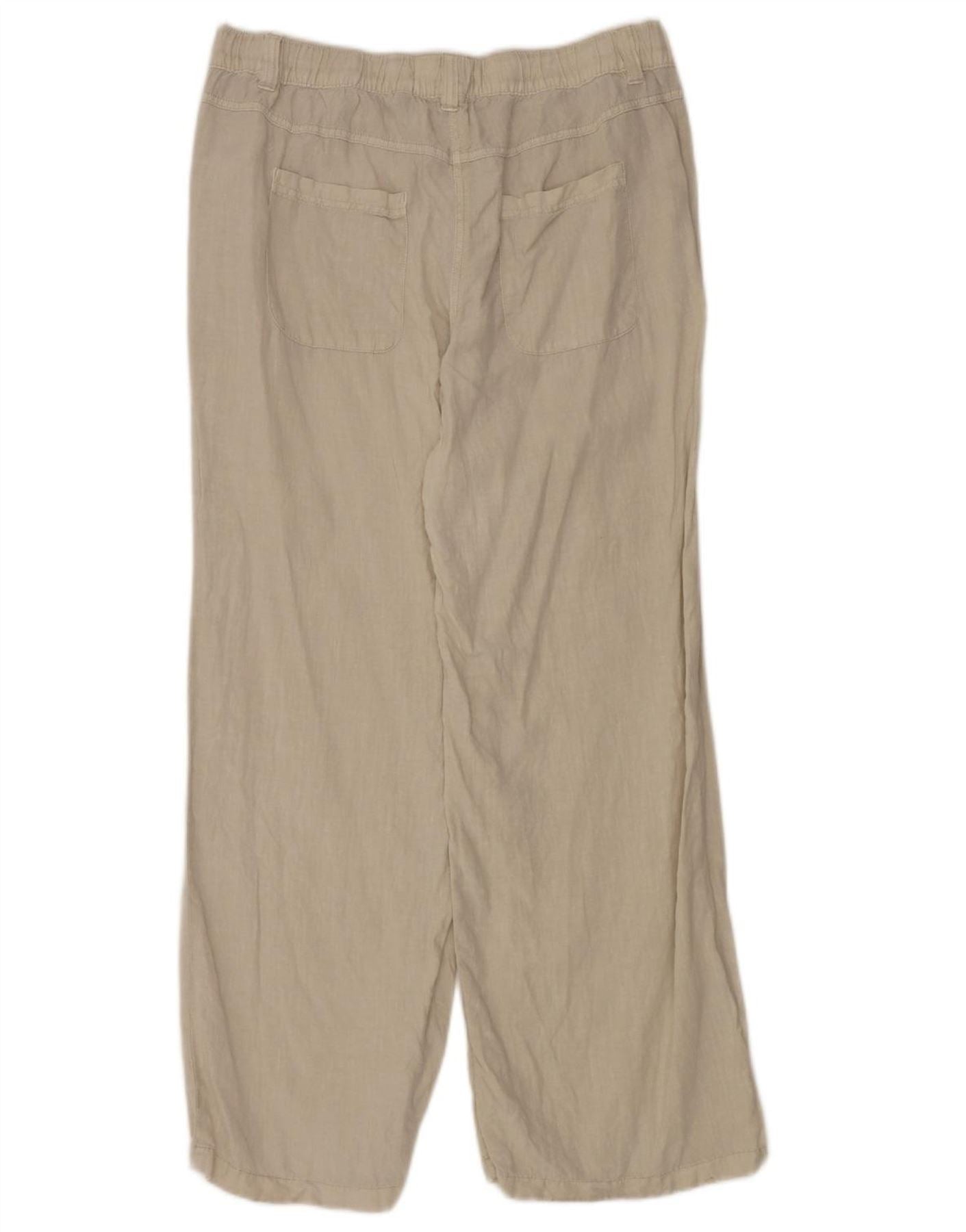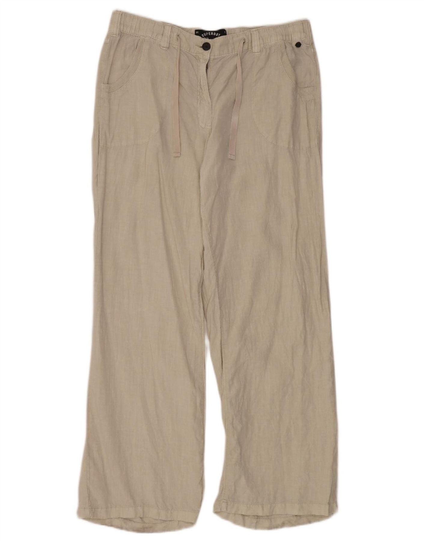SUPERDRY Womens Straight Casual Trousers UK 14 Large W36 L32 Beige Linen