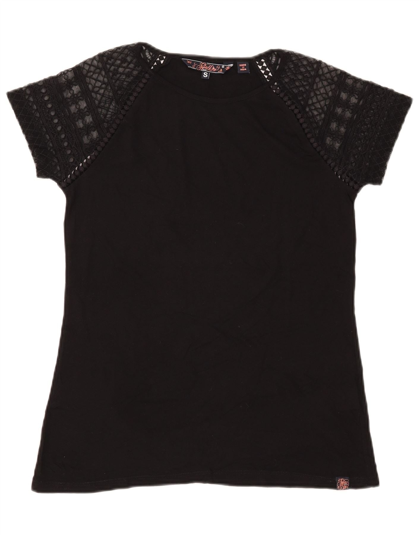 SUPERDRY Camiseta para mujer Top UK 10 Small Black Cotton