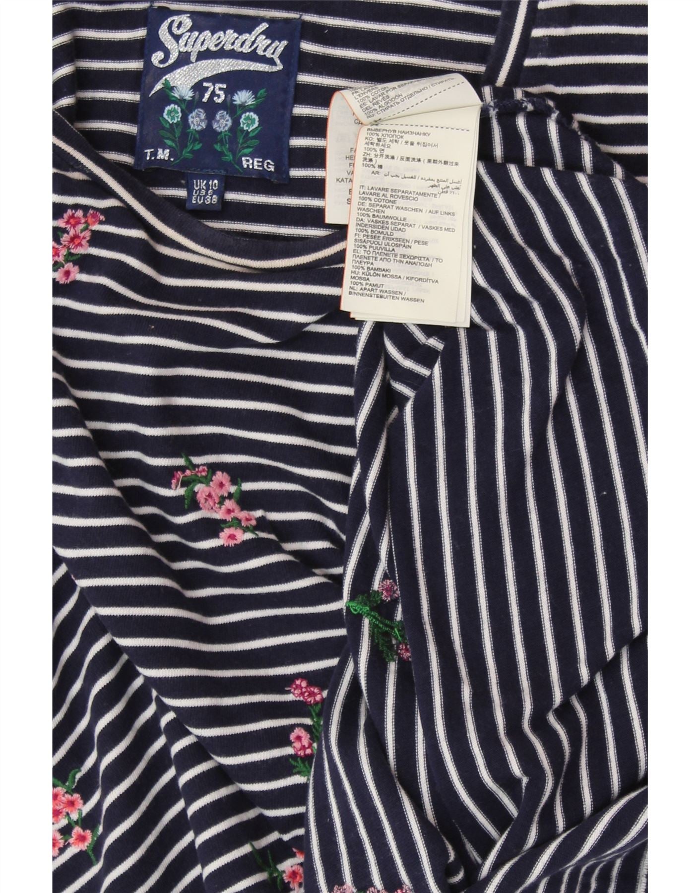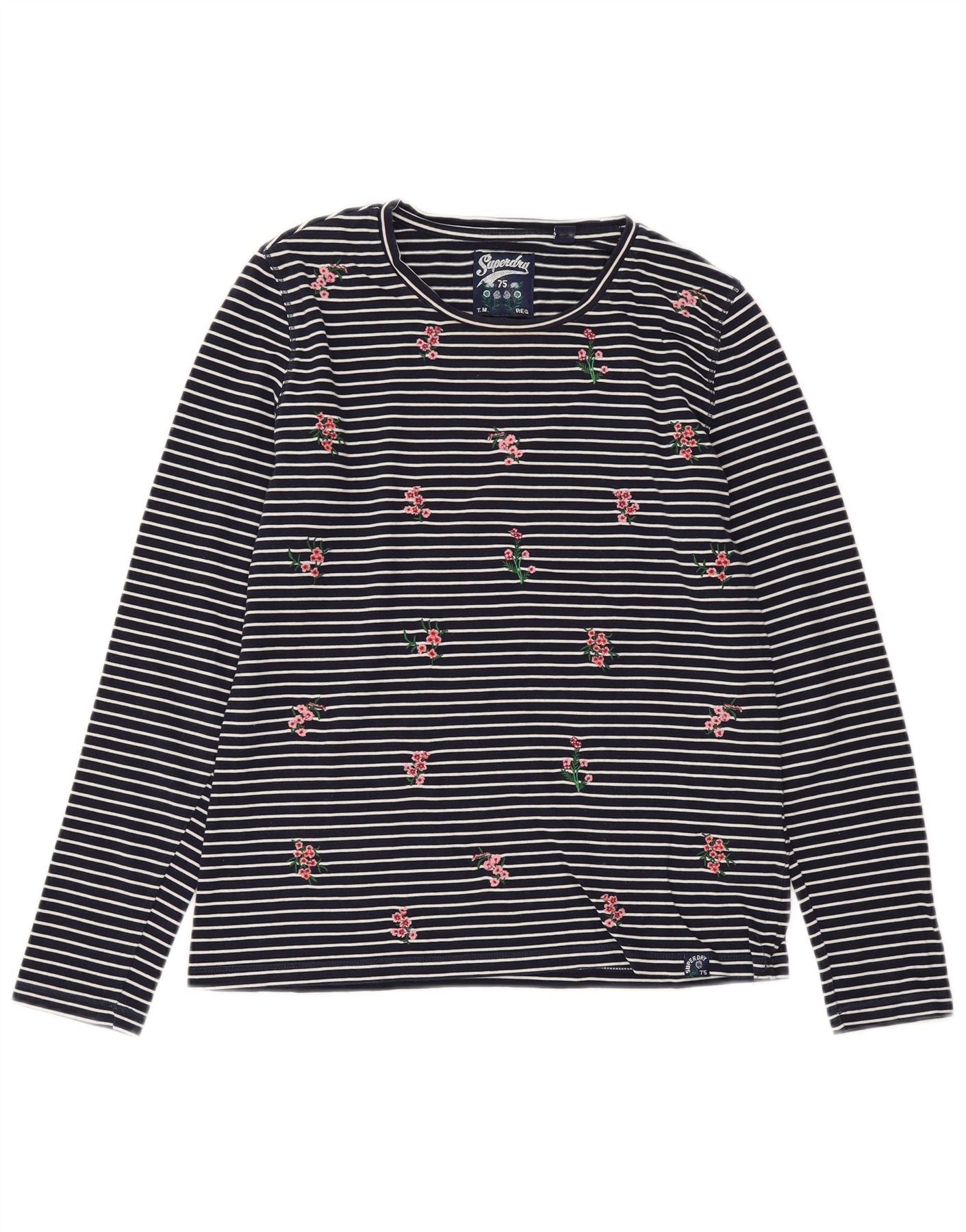SUPERDRY Top de mujer de manga larga UK 40 Small Algodón a rayas azul marino