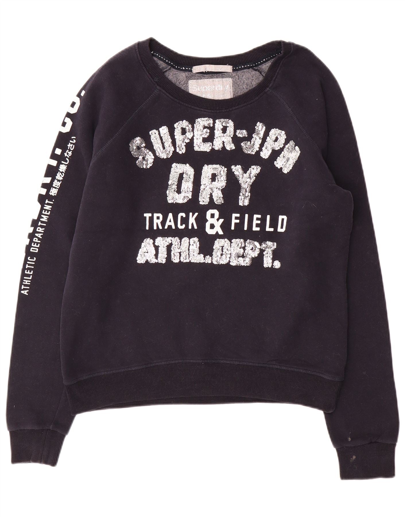 SUPERDRY Mujer Track & Field Crop Sudadera Jumper UK 46 Grande Azul Marino