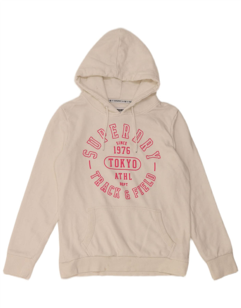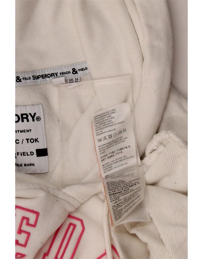 SUPERDRY Jersey con capucha y gráfico de pista y campo para mujer UK 40 Large Off White