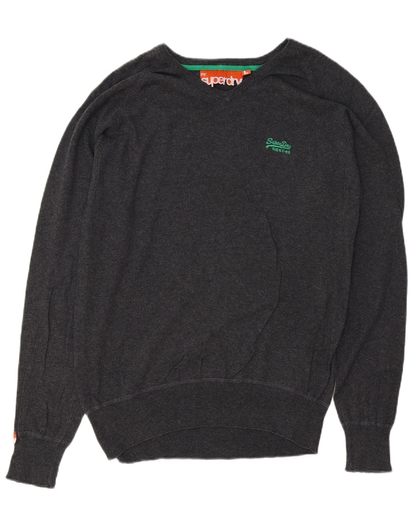 SUPERDRY Suéter tipo jersey con cuello en V para mujer UK 46 Large Grey Cotton