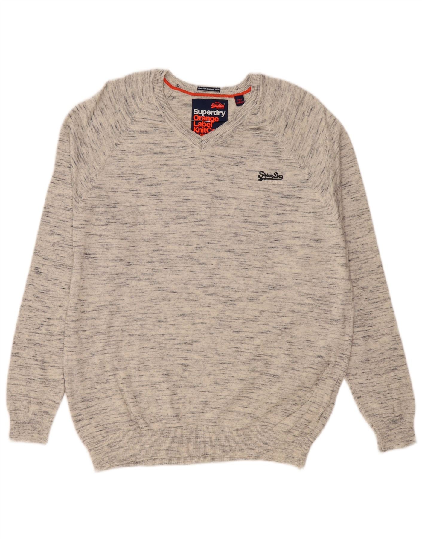 SUPERDRY Jersey con cuello en V para mujer UK 40 XL Algodón moteado gris
