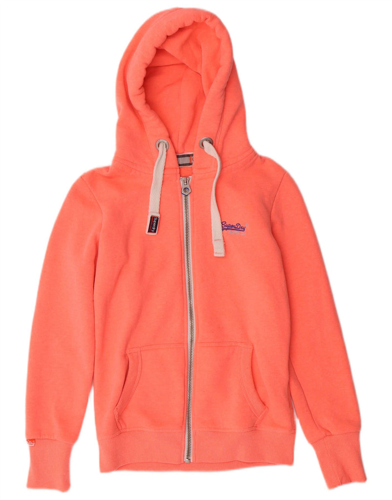 SUPERDRY Womens Zip Hoodie Sweater UK 10 Small Orange Flecked Polyester