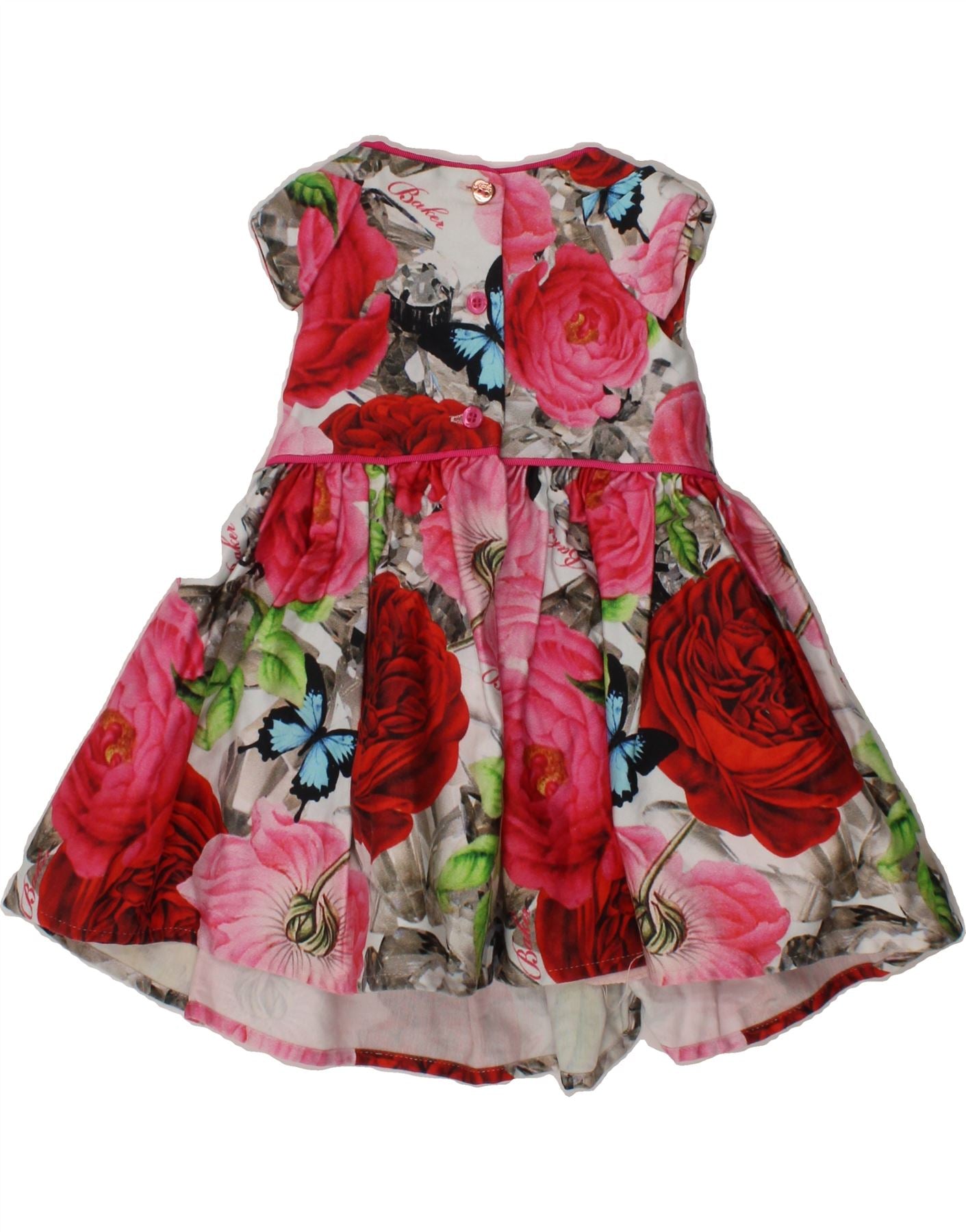 TED BAKER Baby Girls Sleeveless A-Line Dress 0-3 Months Red Floral Cotton
