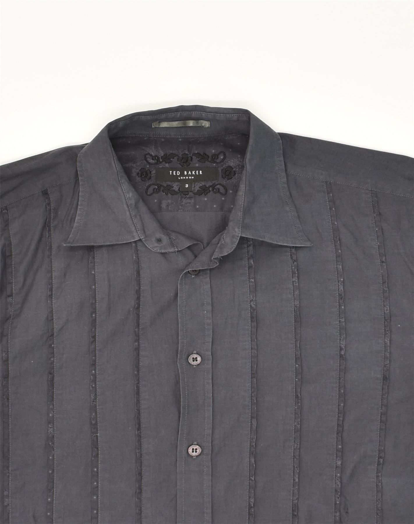 TED BAKER Camisa formal para hombre Talla 3 Algodón a rayas gris medio