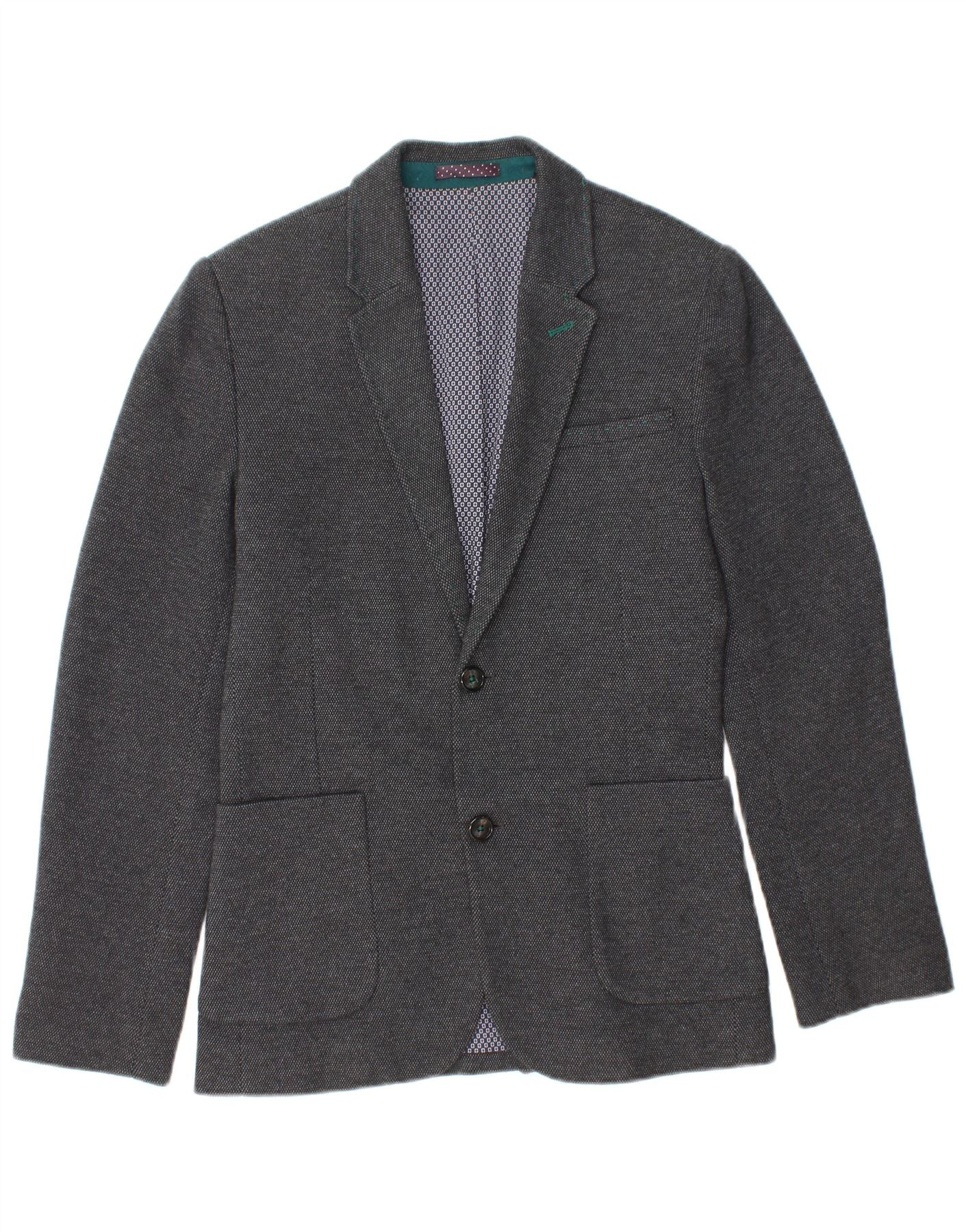 TED BAKER Mens 2 Button Blazer Jacket Size 1 XS Grey Spotted Cotton