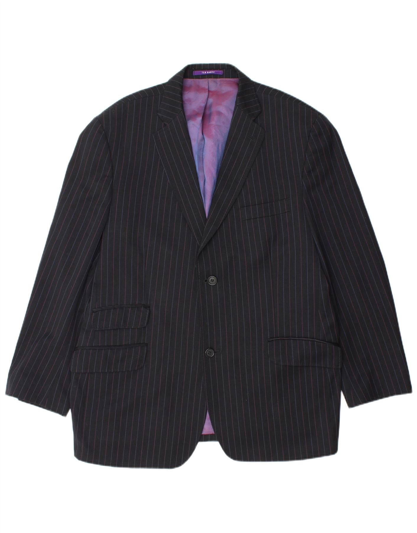 TED BAKER Chaqueta tipo blazer de 2 botones para hombre UK 44 2XL Lana negra a rayas