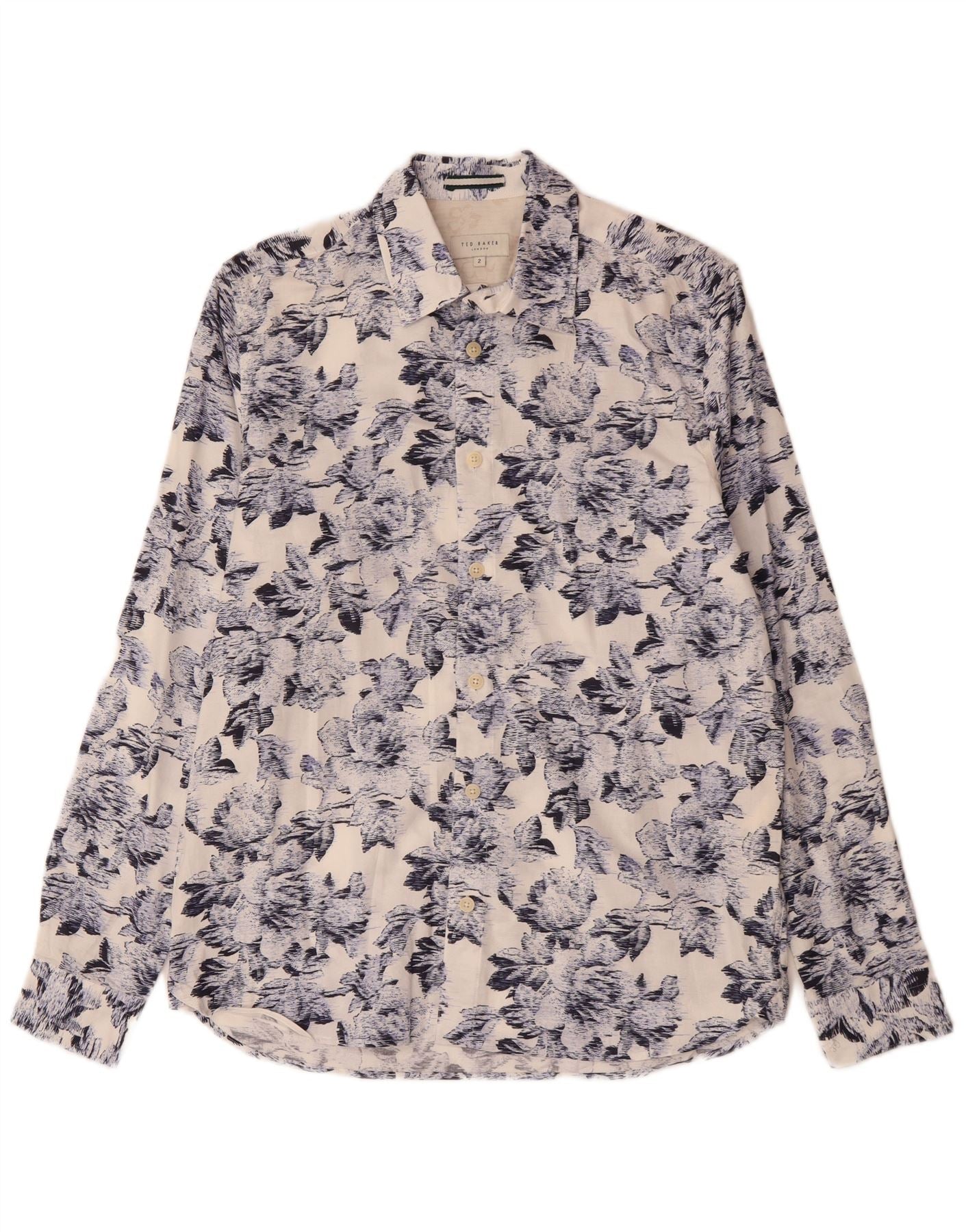 TED BAKER Camisa para hombre Talla 2 Pequeña Algodón floral blanco