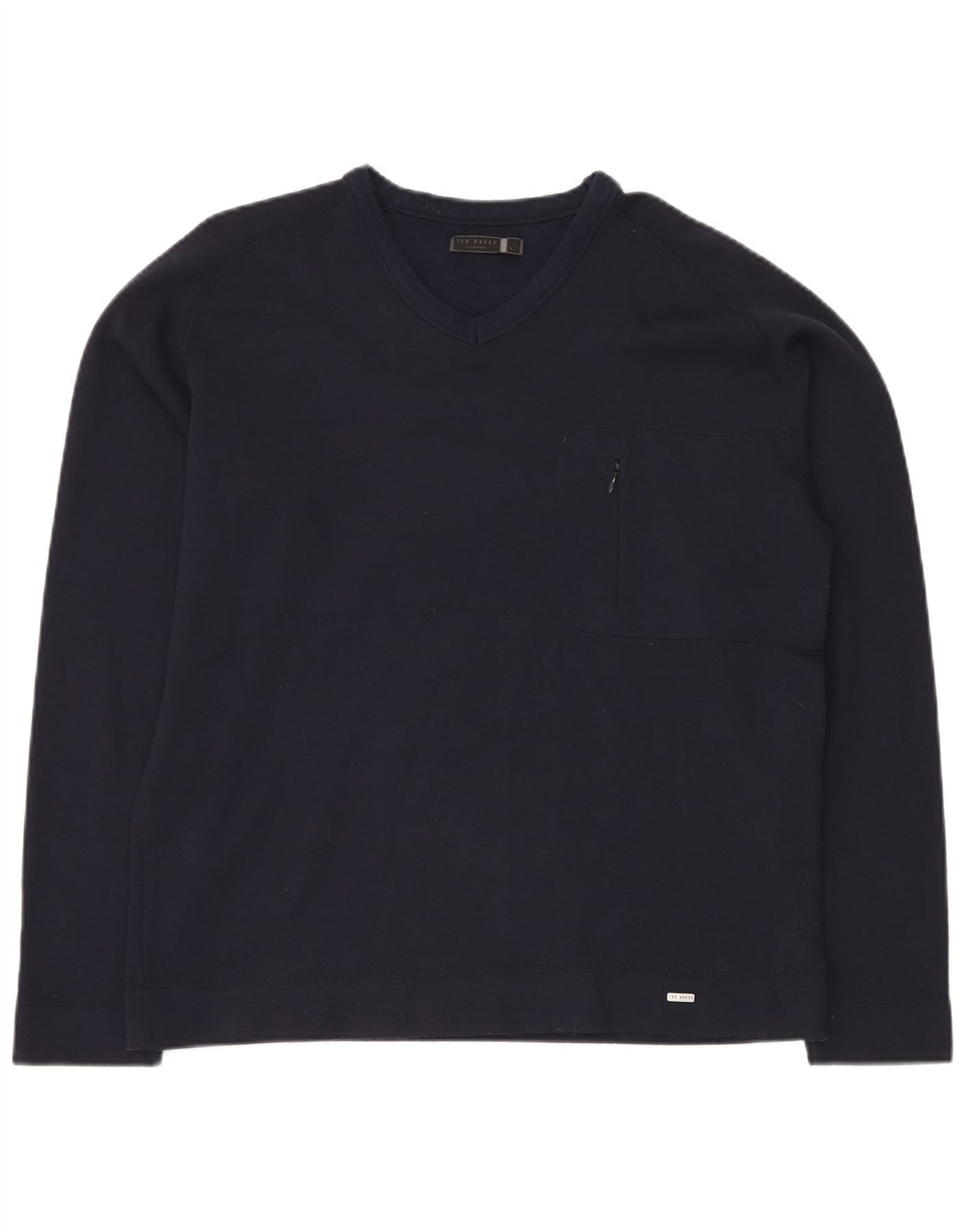 TED BAKER Jersey con cuello en V para hombre Talla 5 XL Algodón azul marino