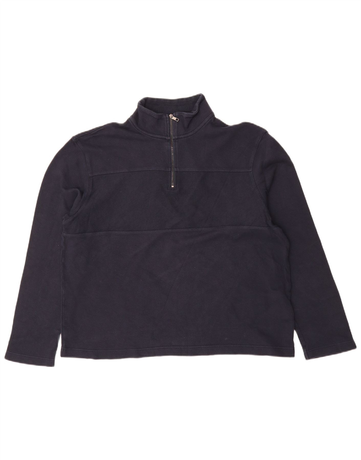 TED BAKER Mens Zip Neck Top Long Sleeve Size 5 Large Navy Blue Cotton