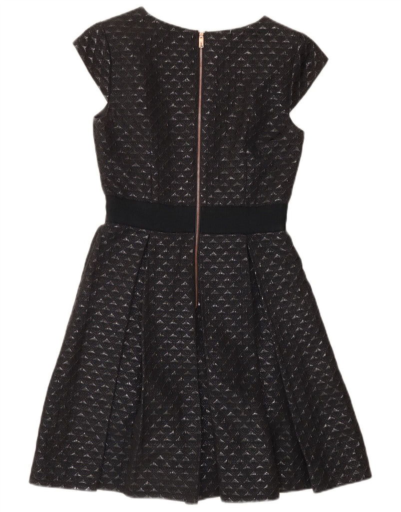 TED BAKER Womens A-Line Dress Size 2 Small Black Geometric Cotton