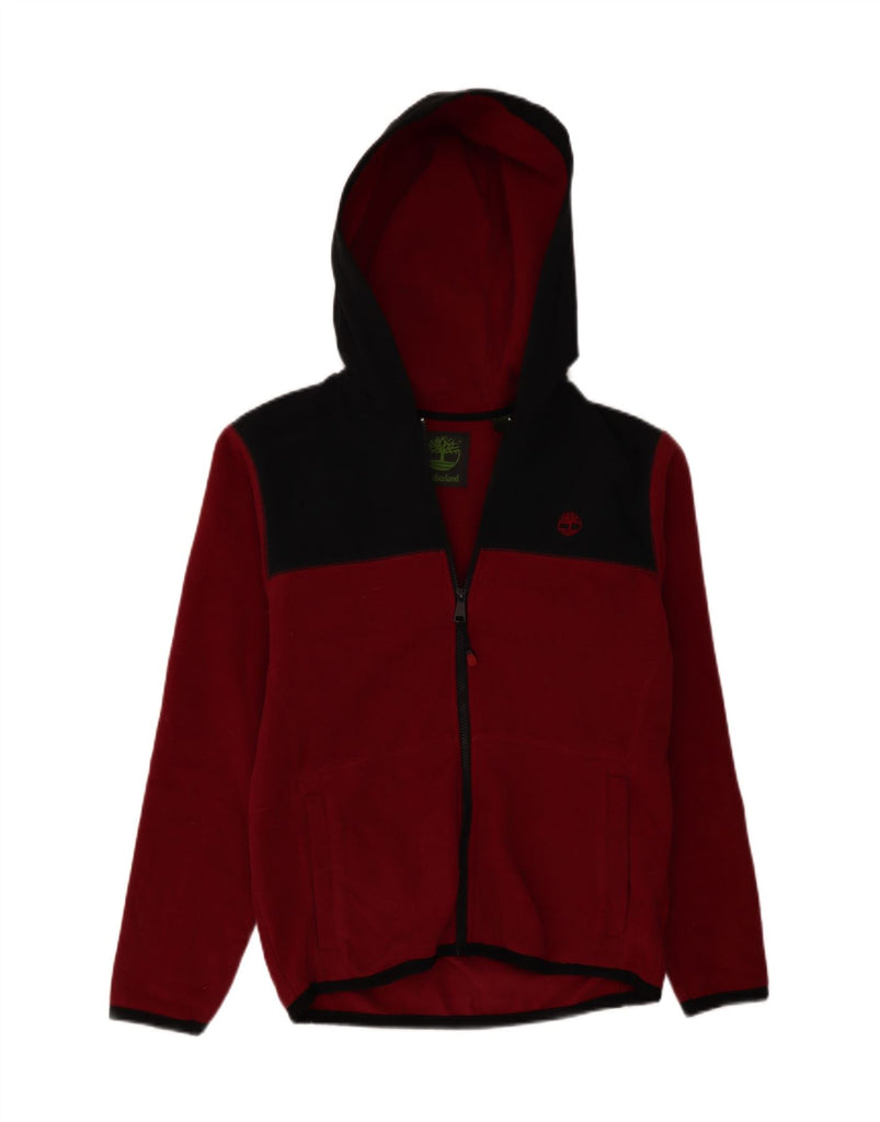 TIMBERLAND Mens Hooded Fleece Jacket UK 36 Small Red Colourblock Polyester