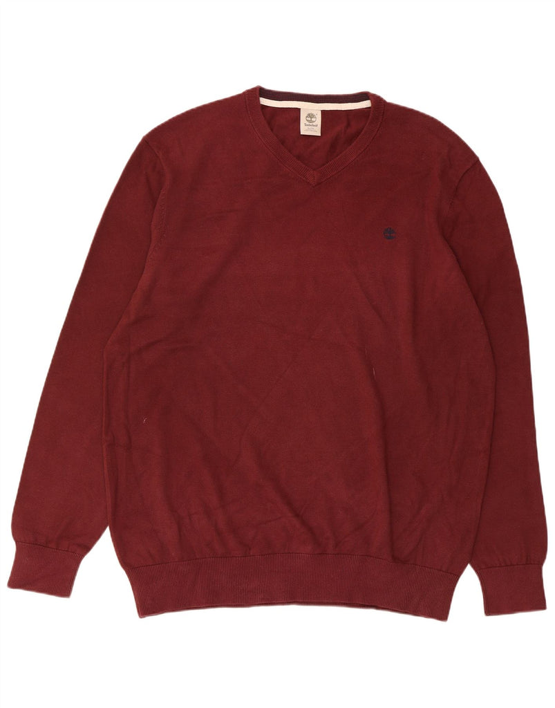 TIMBERLAND Jersey Regular Fit con Cuello en V para Hombre XL Algodón Burdeos