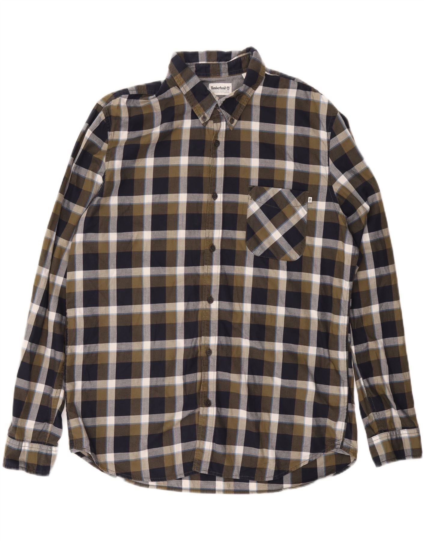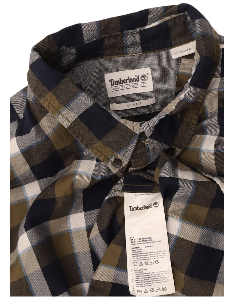 TIMBERLAND Camisa de franela ajustada XL de algodón a cuadros caqui para hombre