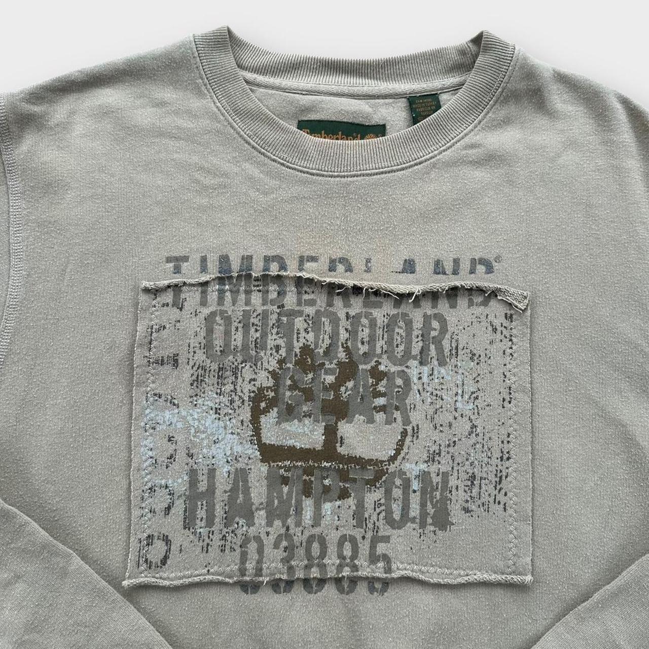 Sudadera vintage con estampado gráfico Timberland de principios de los años 2000 en marrón y logo en el brazo