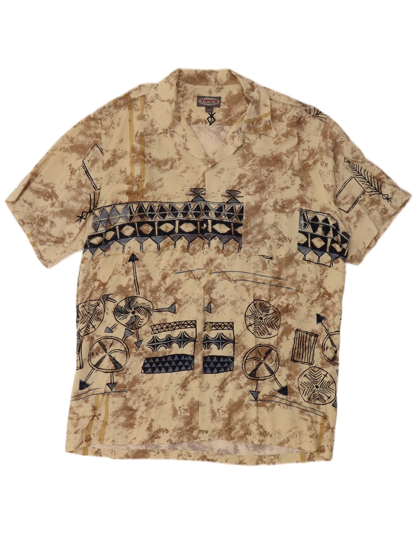 TIPO' S Camisa De Manga Corta Hombre Viscosa Geométrica Beige Grande