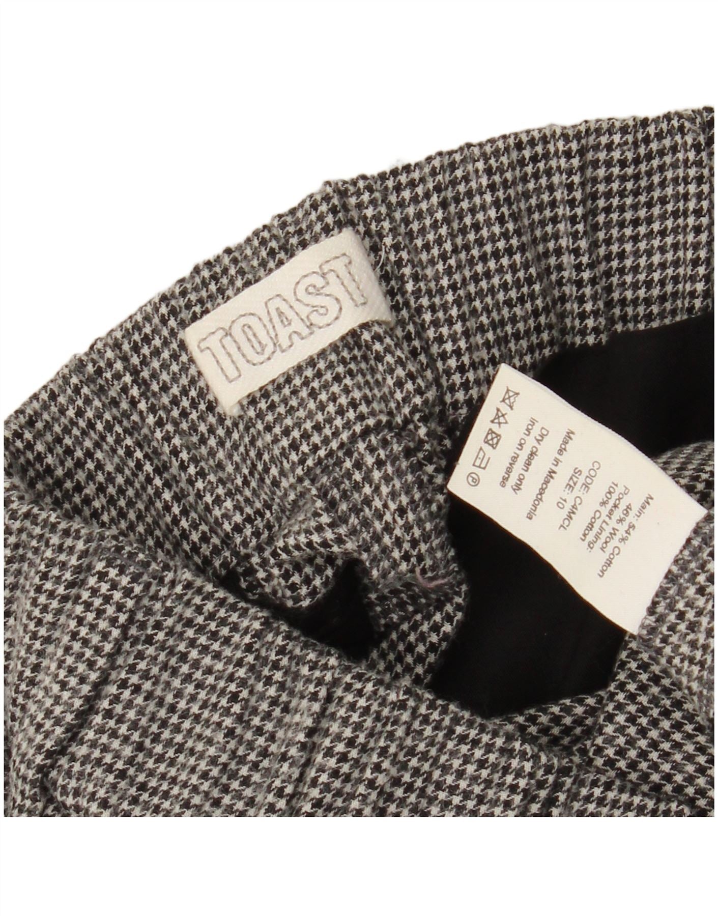 - AI Description: This Toast womens cropped trousers are crafted from a soft cotton and wool blend fabric, featuring a classic grey houndstooth pattern. They offer a relaxed fit with a comfortable pull on elastic waist. Practical pockets add functional detail. The cropped length provides a modern, versatile silhouette, perfect for everyday wear.