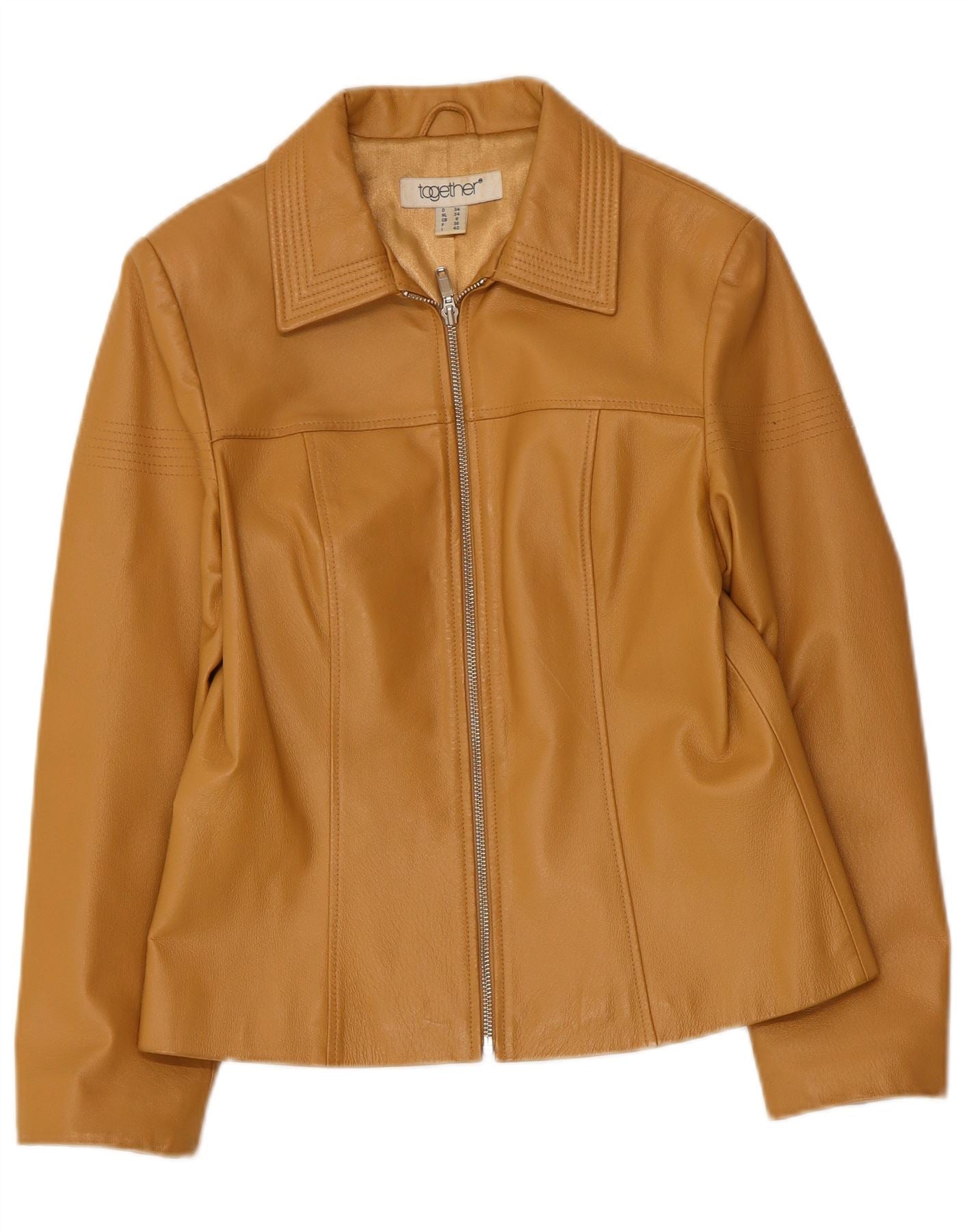 TOGETHER Chaqueta de cuero para mujer UK 8 Small Cuero beige