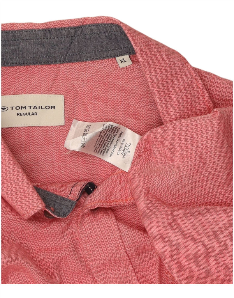 TOM TAILOR Mens Regular Fit Short Sleeve Shirt XL Red Chevron Cotton