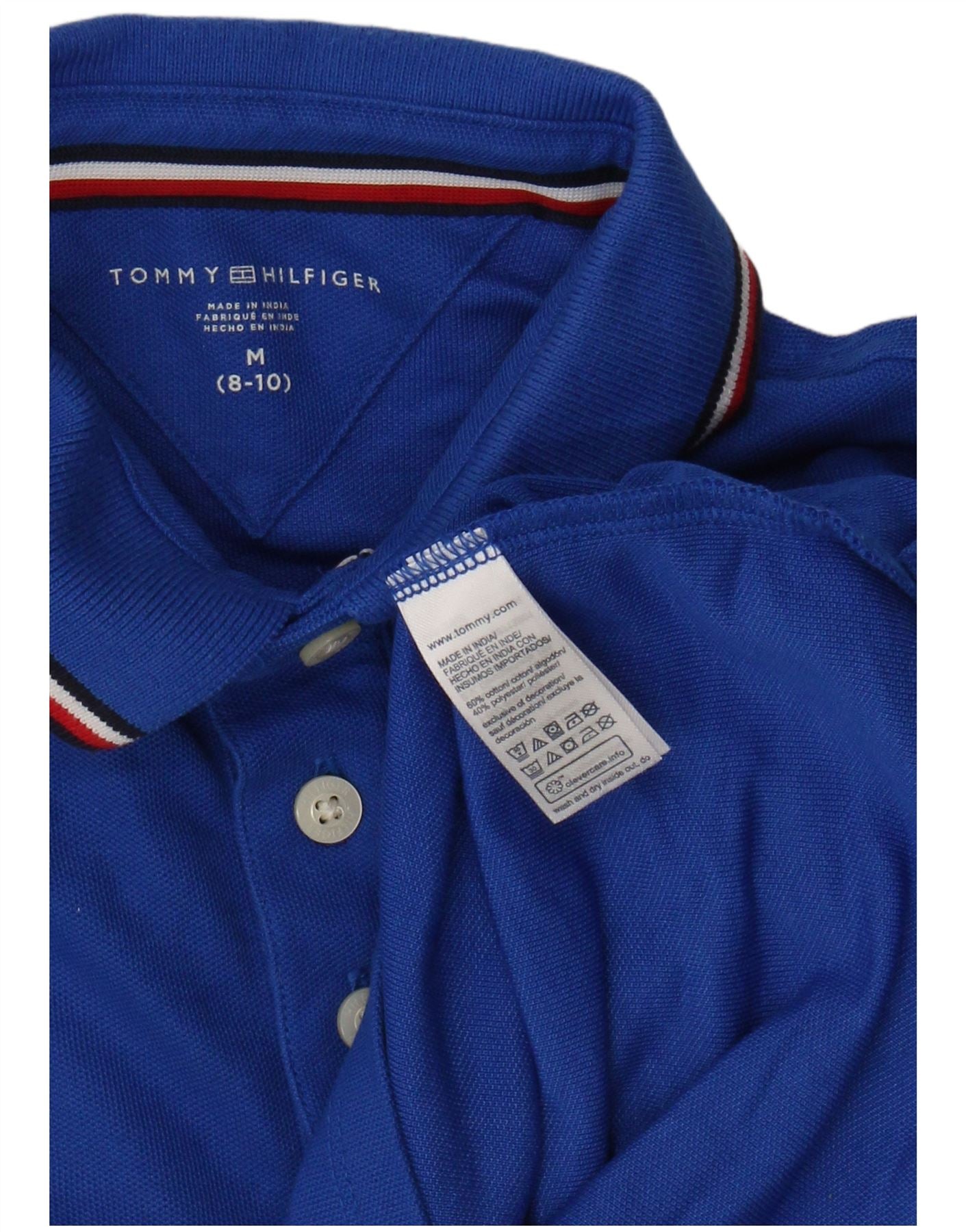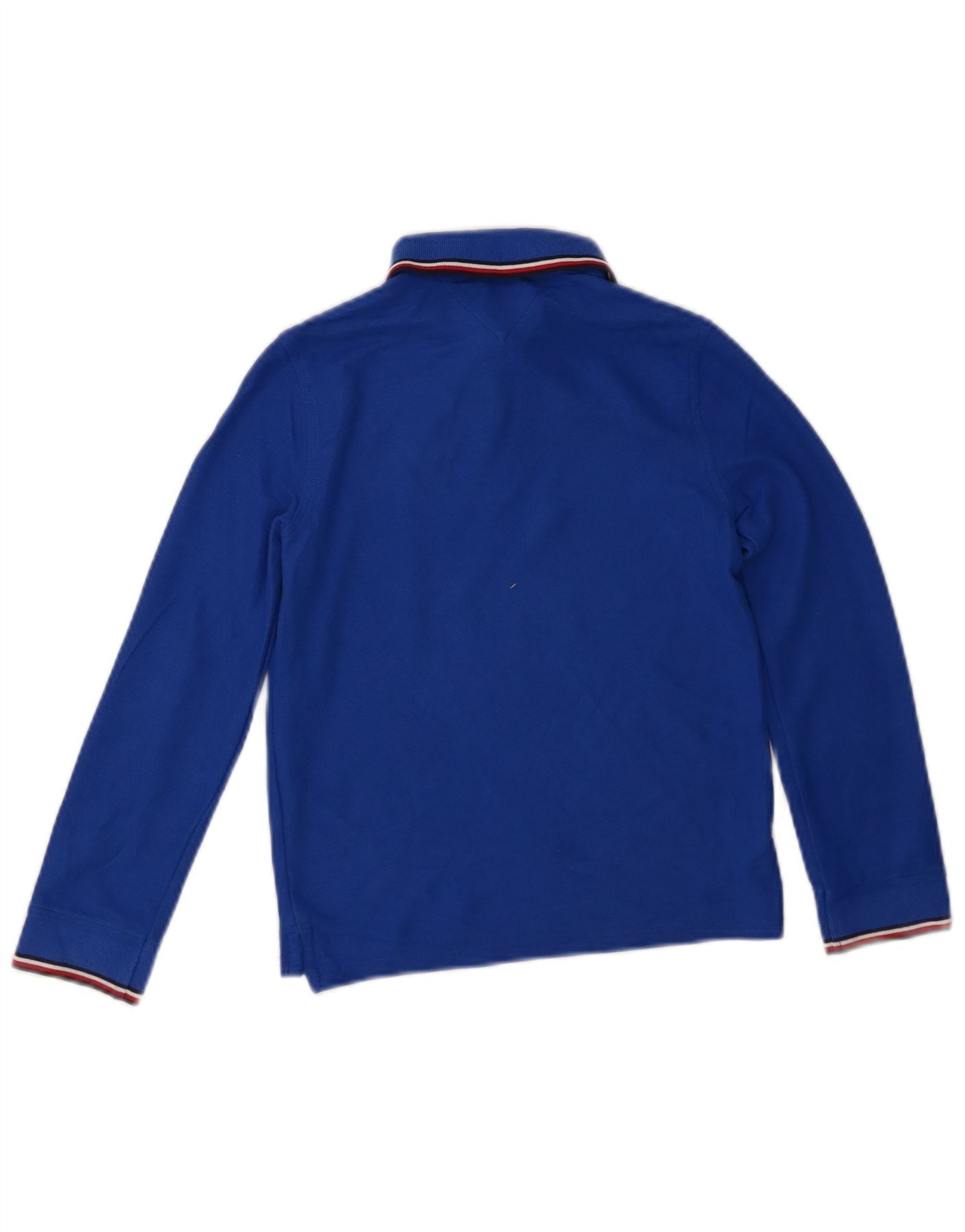TOMMY HILFIGER Boys Long Sleeve Polo Shirt 8-9 Years Medium Blue Cotton