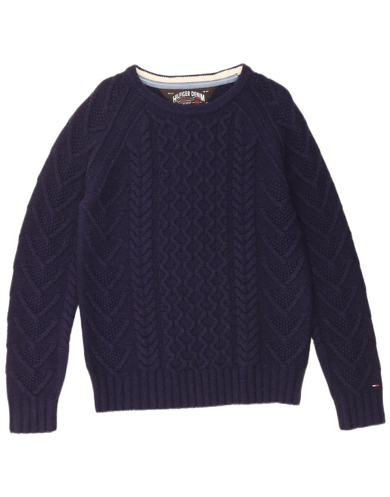 TOMMY HILFIGER Jersey tipo jersey con cuello barco para hombre de lana de cordero azul marino mediano