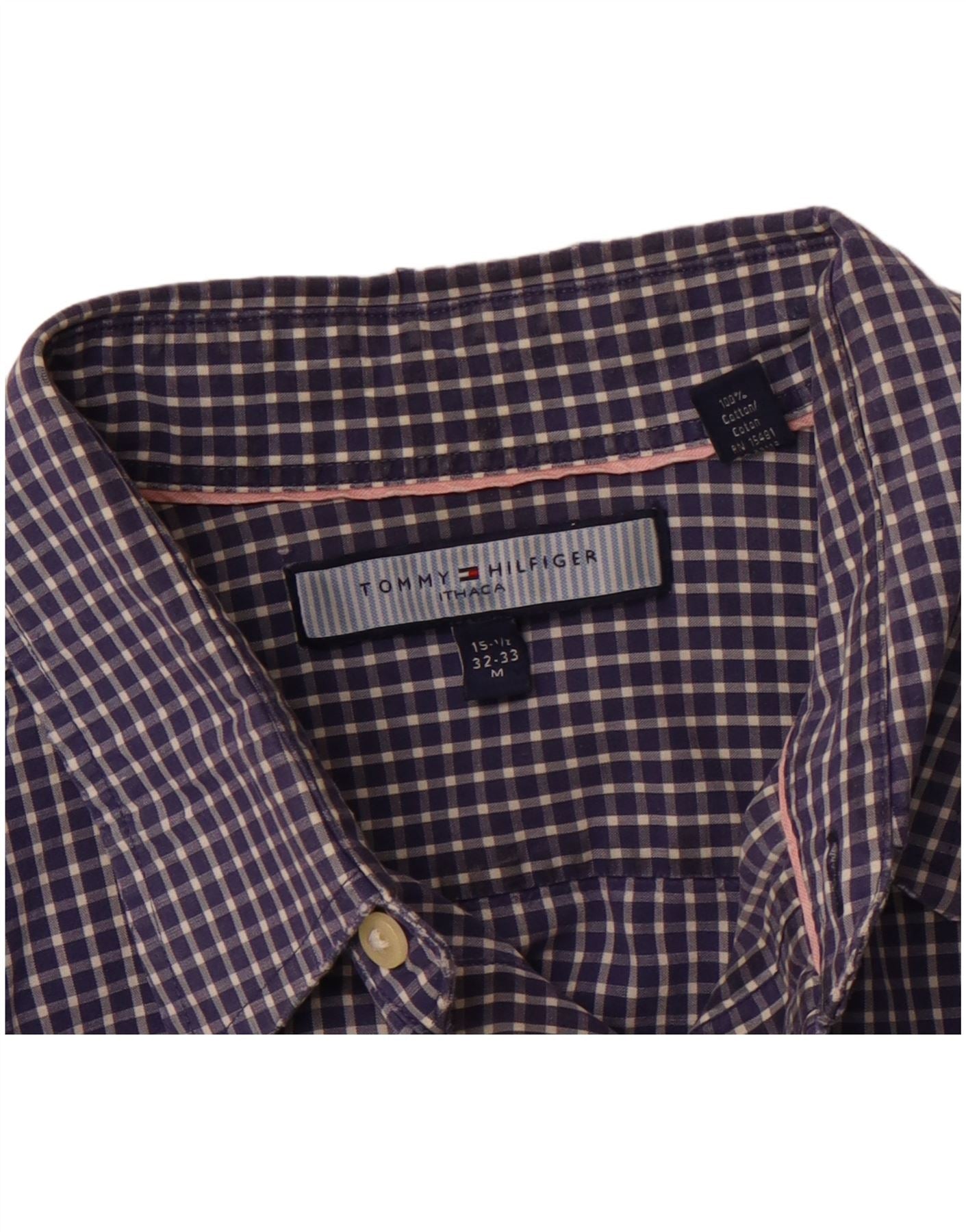 TOMMY HILFIGER Camisa a cuadros para hombre Talla 15 1/2 Mediana Azul marino Algodón