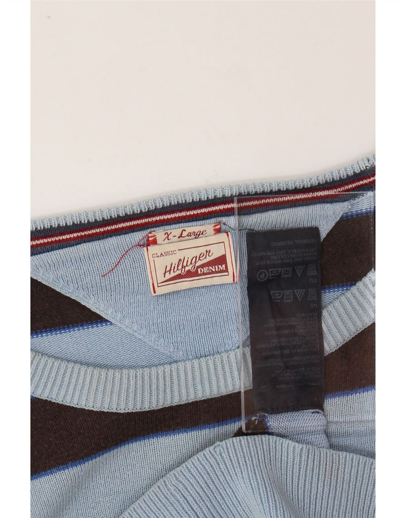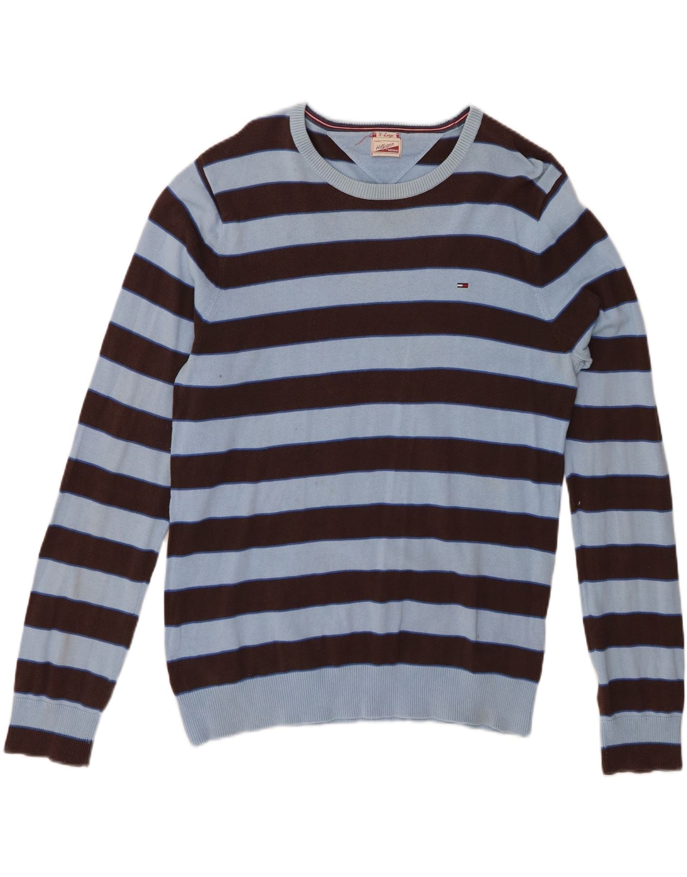 TOMMY HILFIGER Mens Classic Boat Neck Jumper Sweater XL Blue Striped