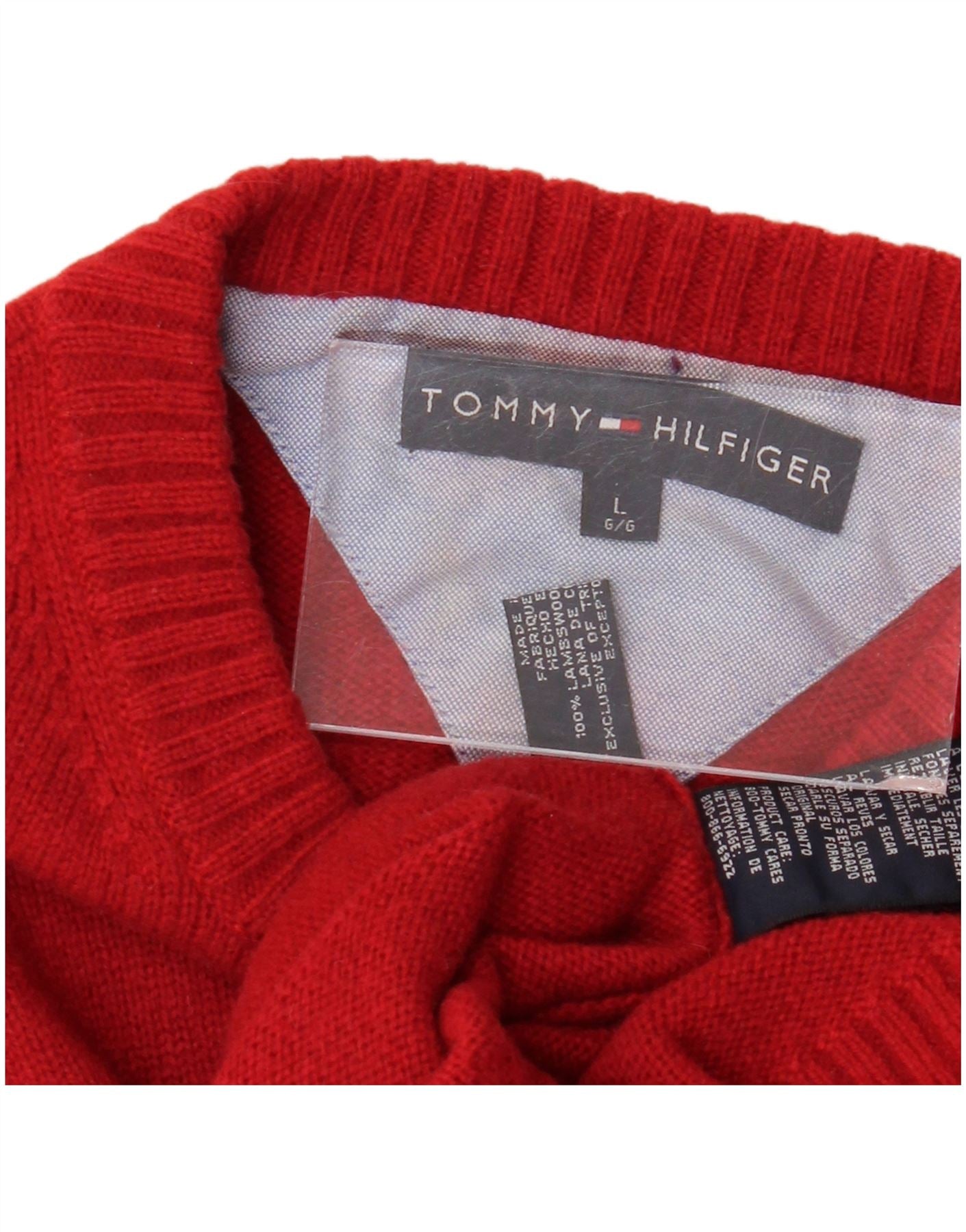 TOMMY HILFIGER Jersey con cuello redondo para hombre, talla grande, lana roja