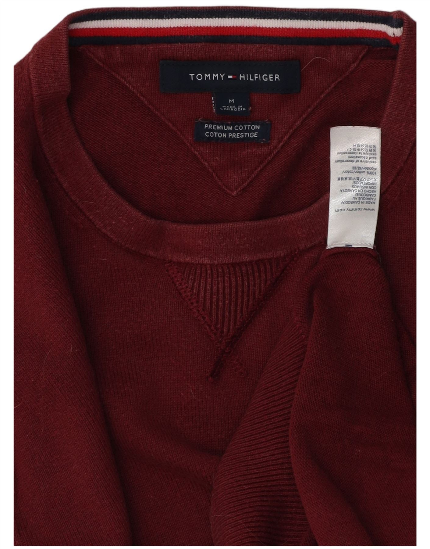 TOMMY HILFIGER Jersey De Cuello Redondo Para Hombre Algodón Granate Medio