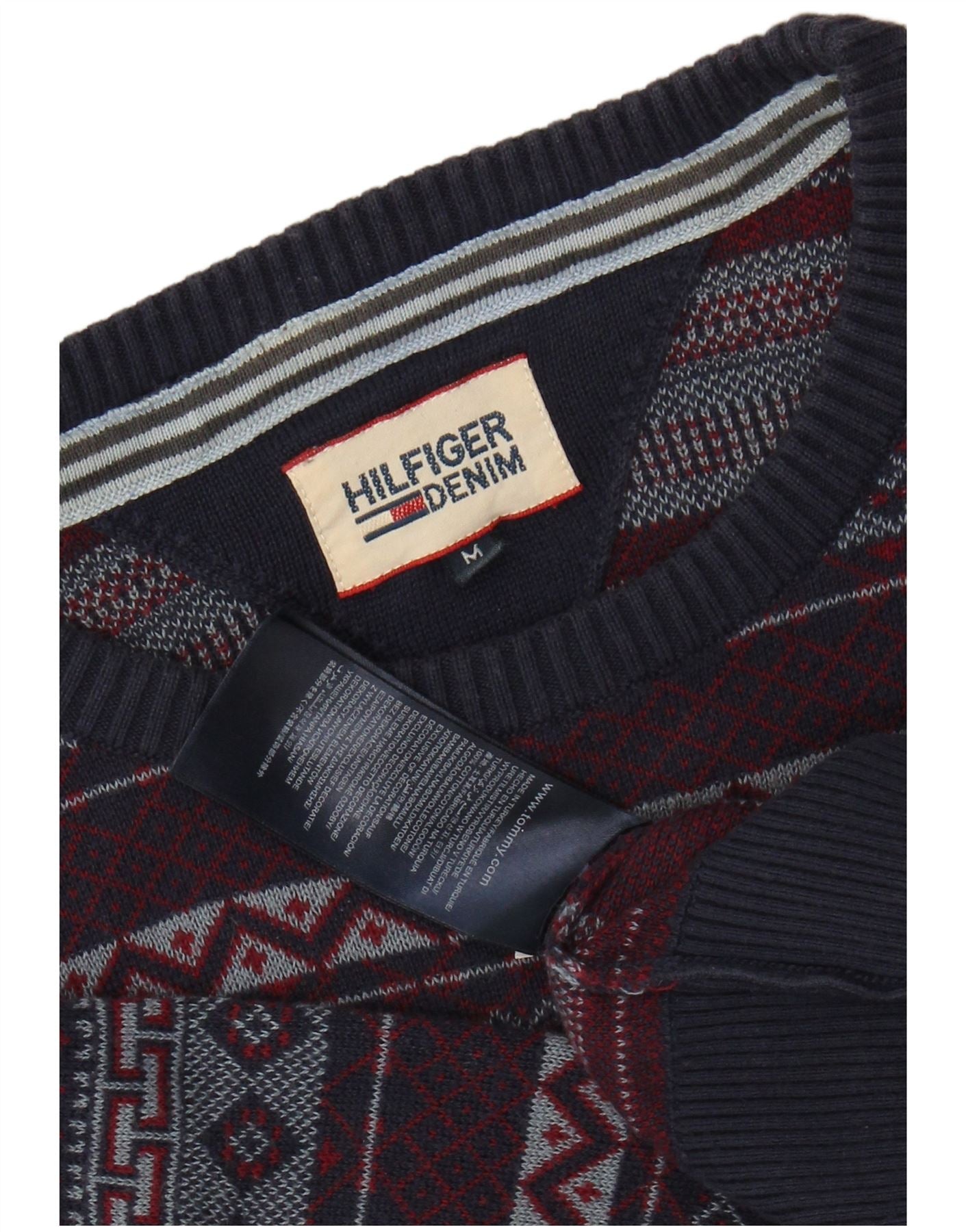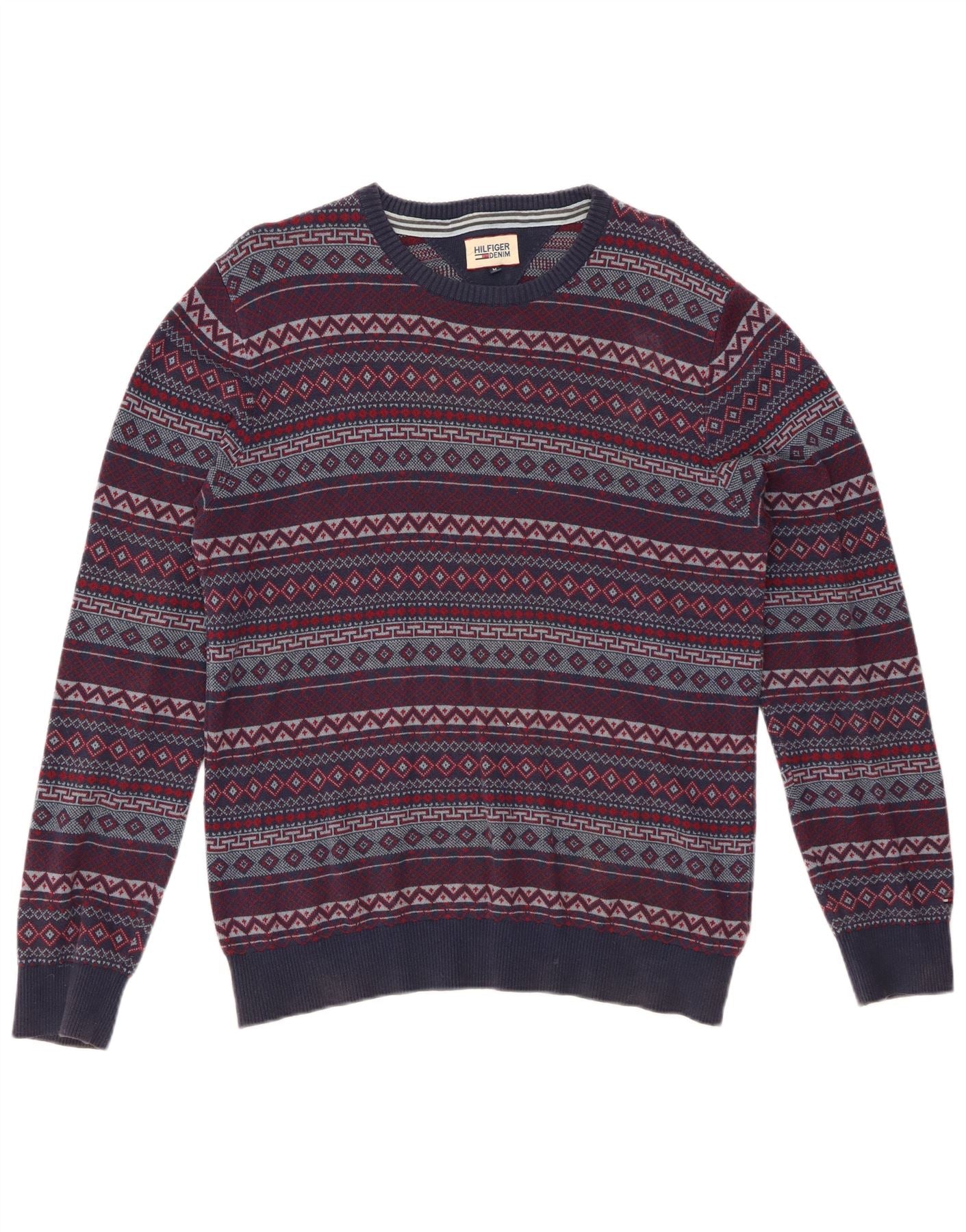 TOMMY HILFIGER Suéter tipo jersey con cuello redondo para hombre Azul marino mediano Fair Isle