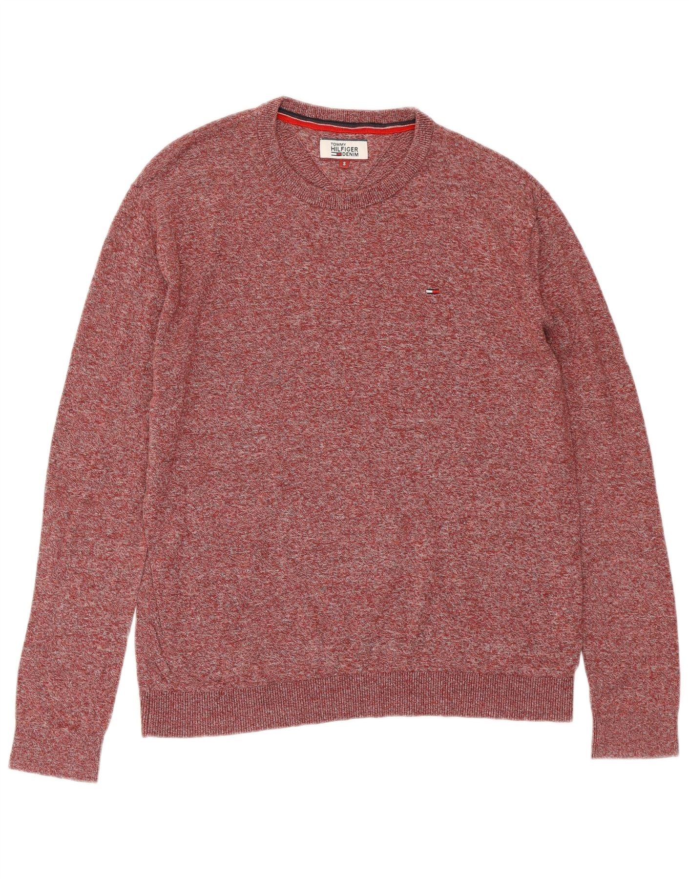 TOMMY HILFIGER Jersey de cuello redondo para hombre pequeño de algodón burdeos