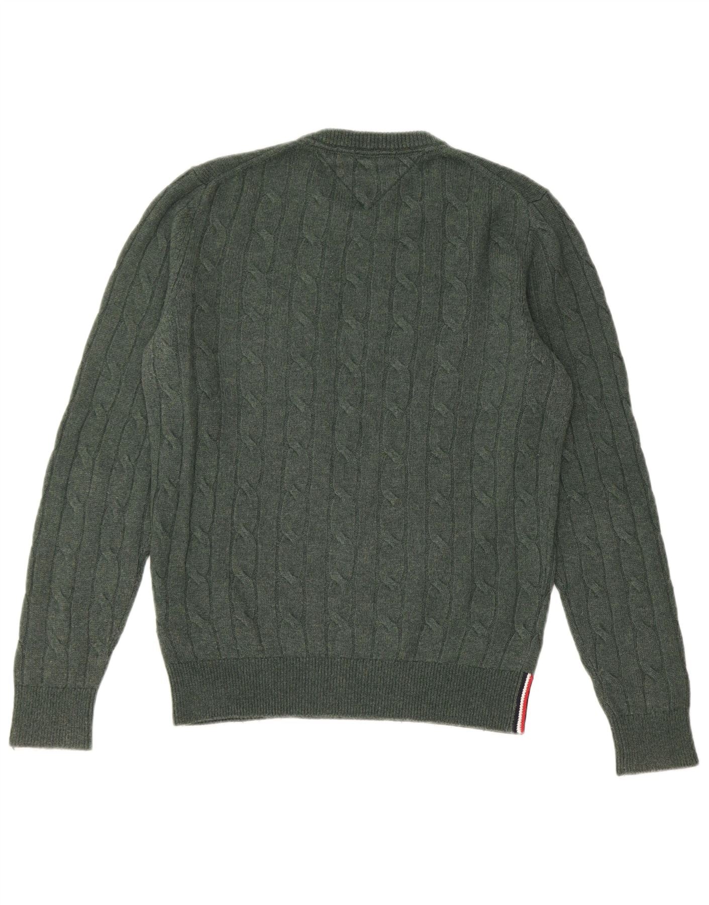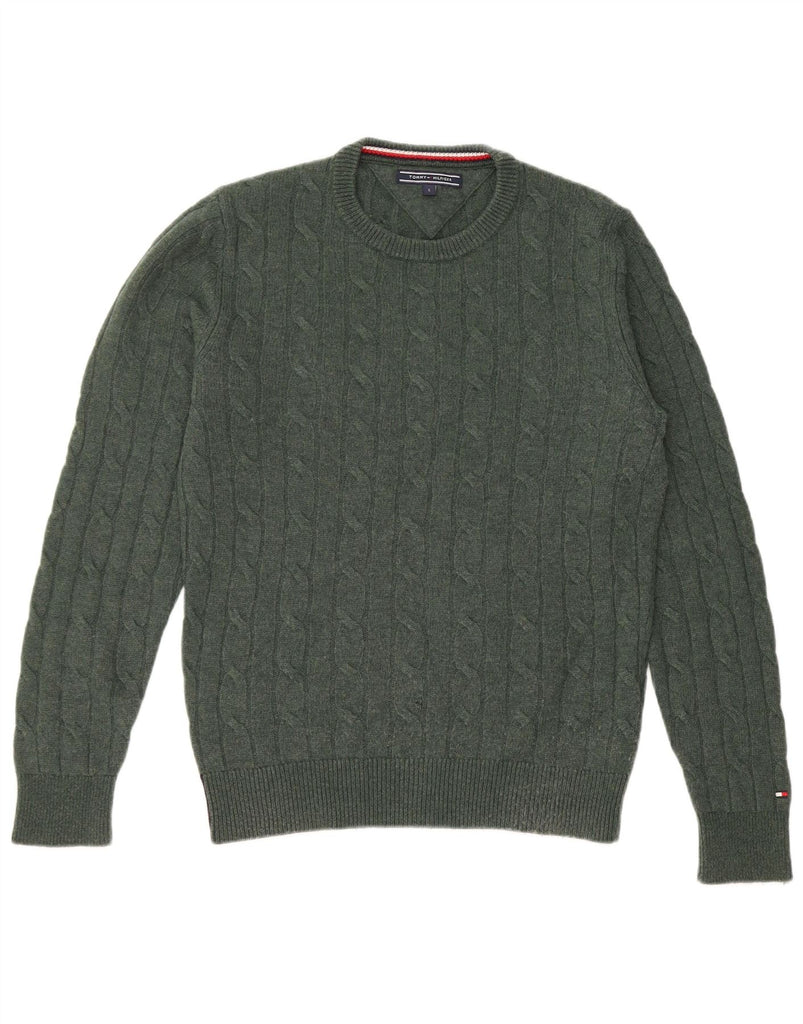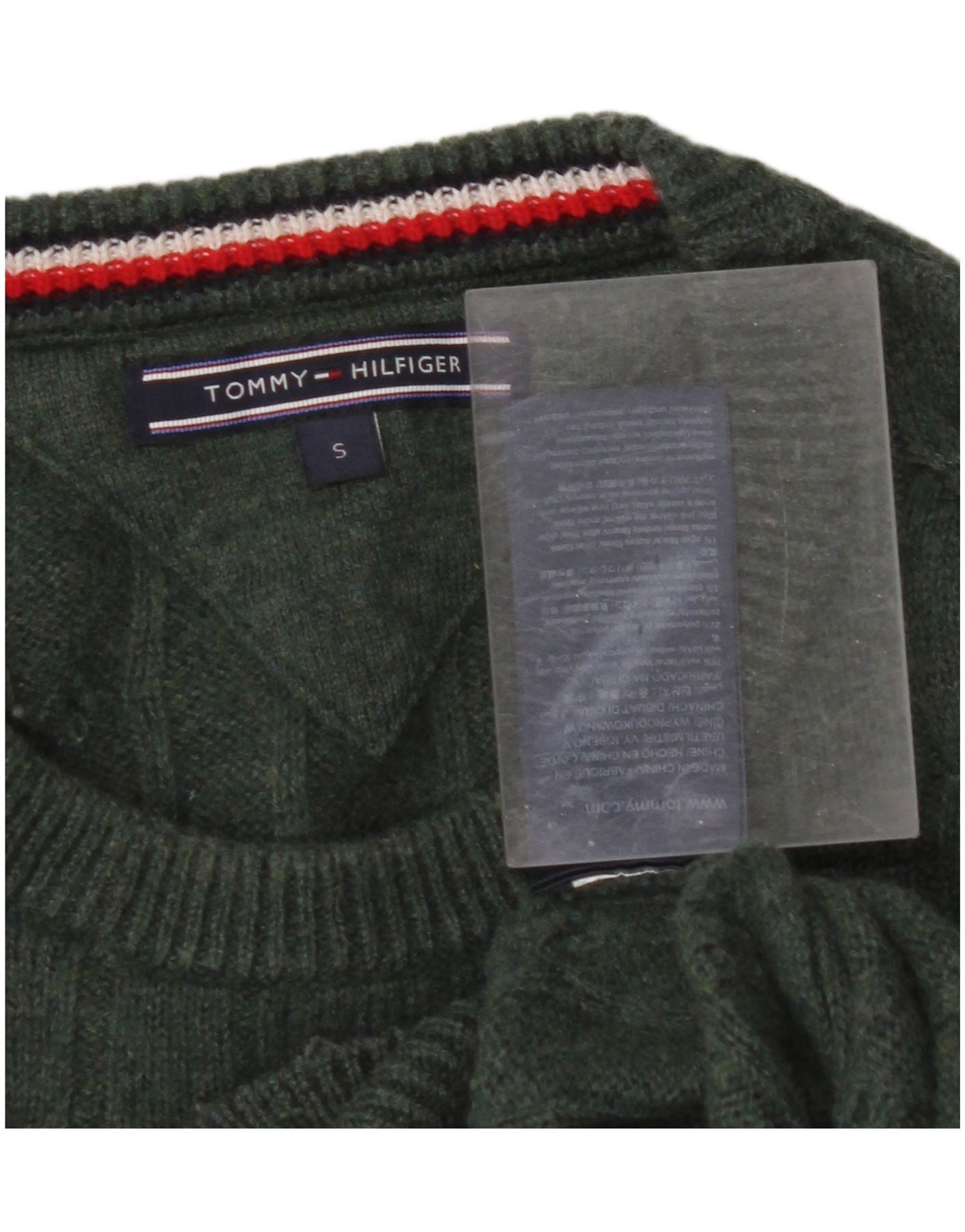 TOMMY HILFIGER Jersey de cuello redondo para hombre, jersey de lana verde pequeño