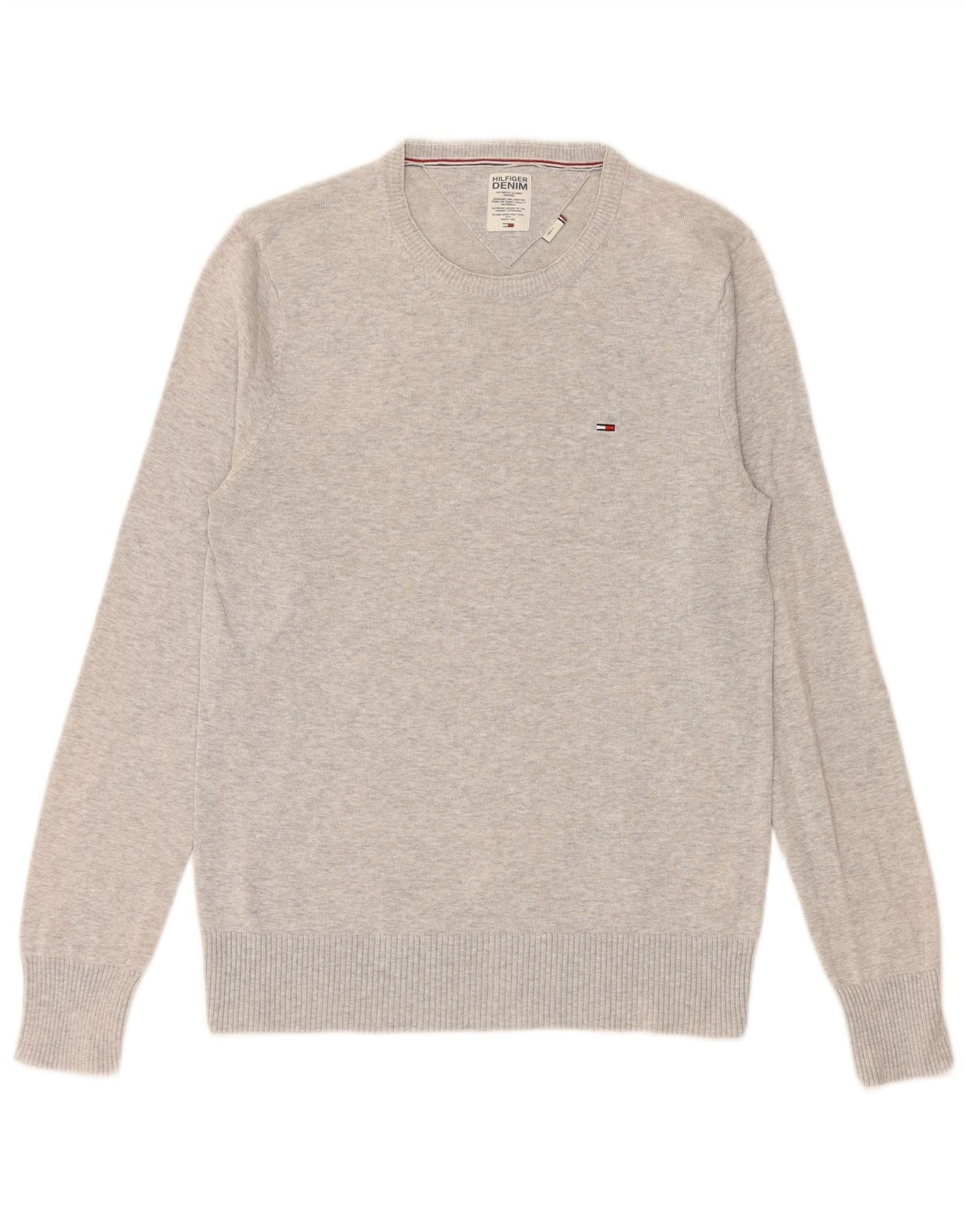 TOMMY HILFIGER Mens Crew Neck Jumper Sweater Small Grey Cotton