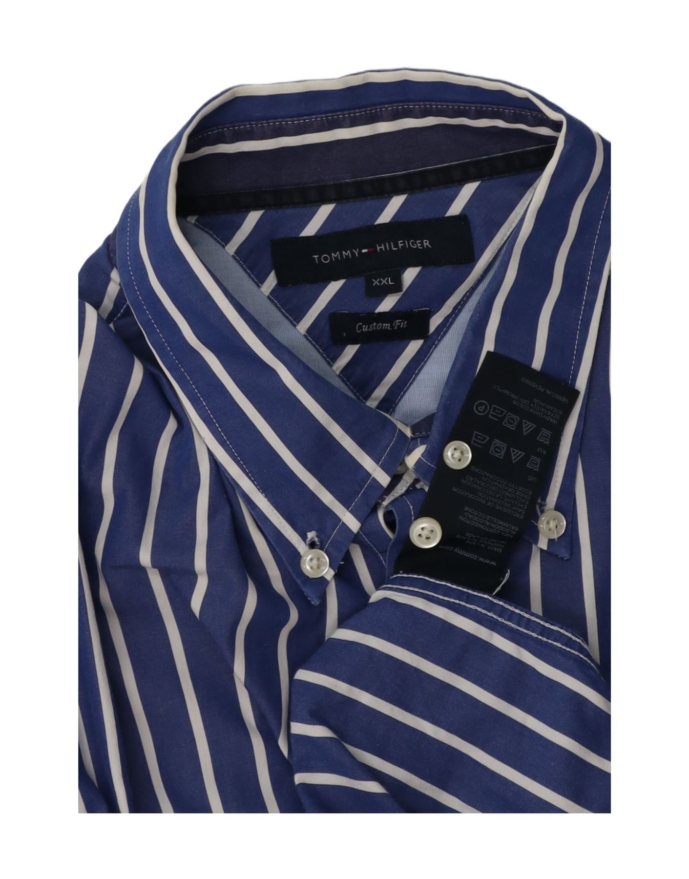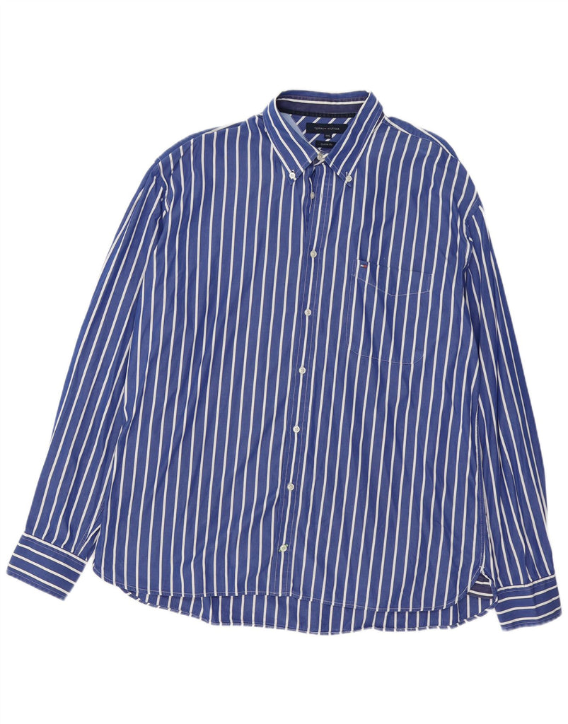 TOMMY HILFIGER Camisa Custom Fit para hombre 2XL Algodón a rayas azules