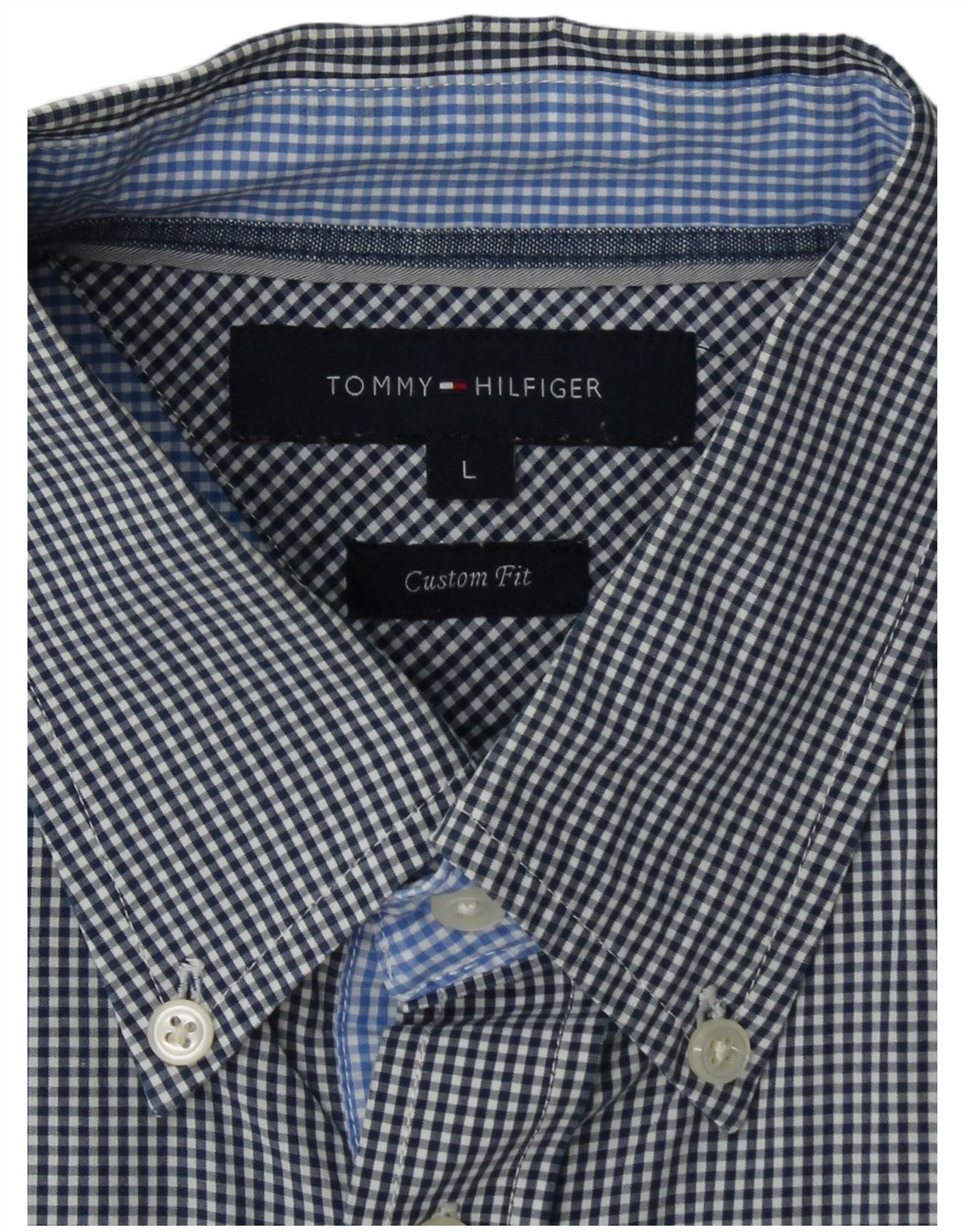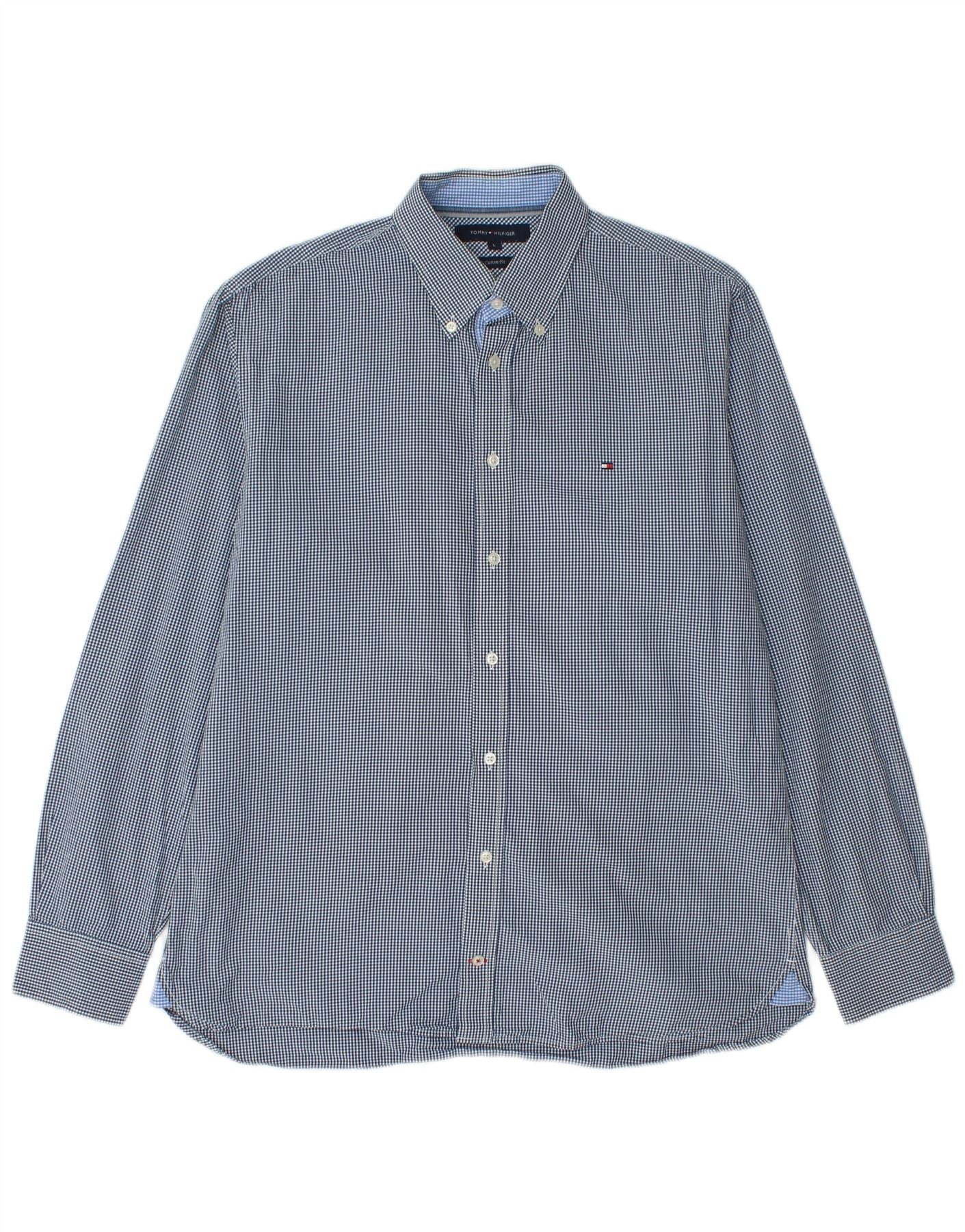 Tommy Hilfiger Camisa de ajuste personalizado para hombre, tamaño grande, cuadros azul marino