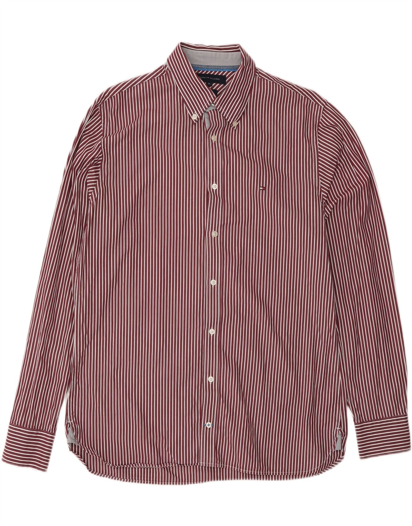 TOMMY HILFIGER Camisa Custom Fit de algodón con rayas diplomáticas en color burdeos medio para hombre