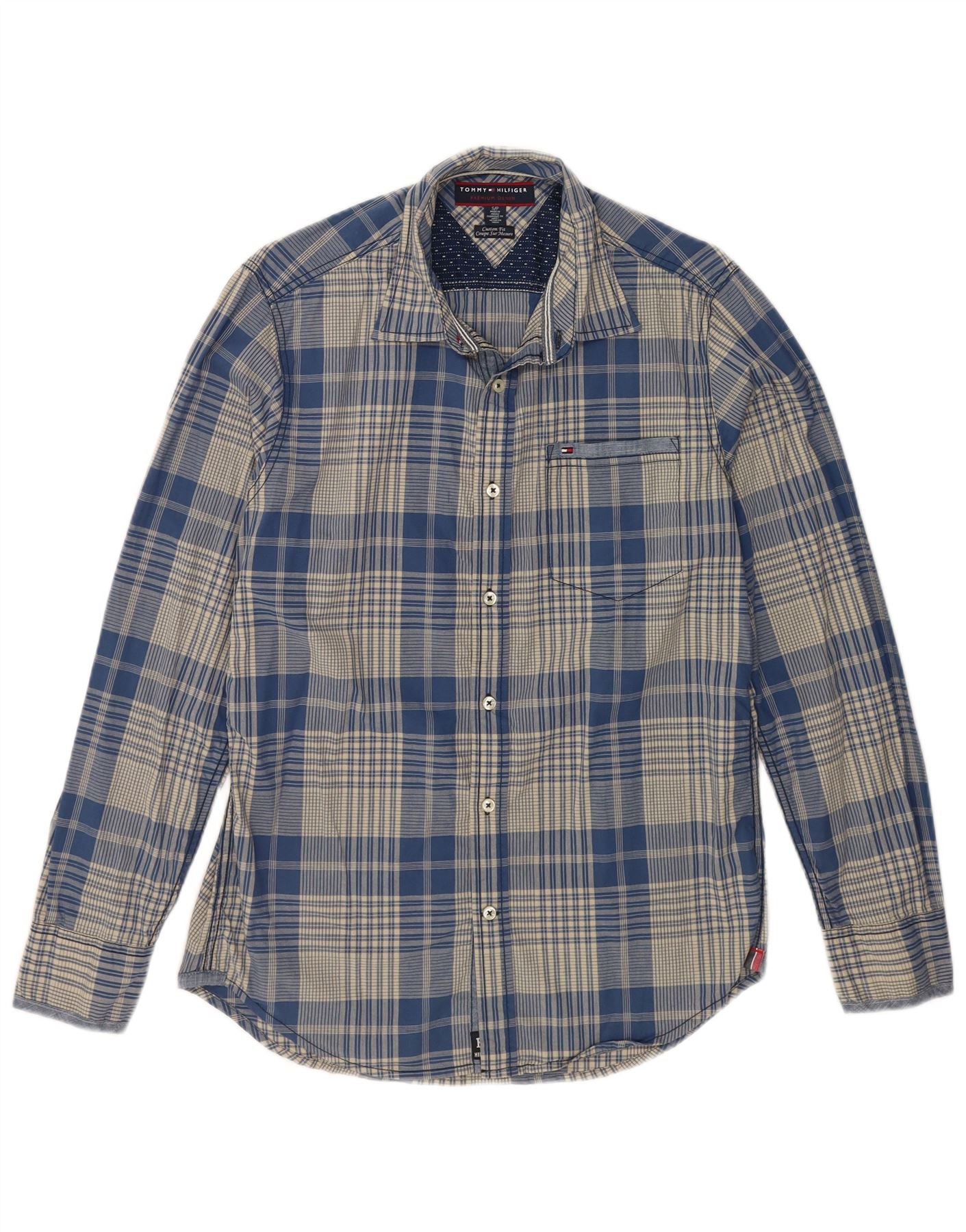TOMMY HILFIGER Camisa de corte personalizado para hombre, algodón a cuadros azul pequeño
