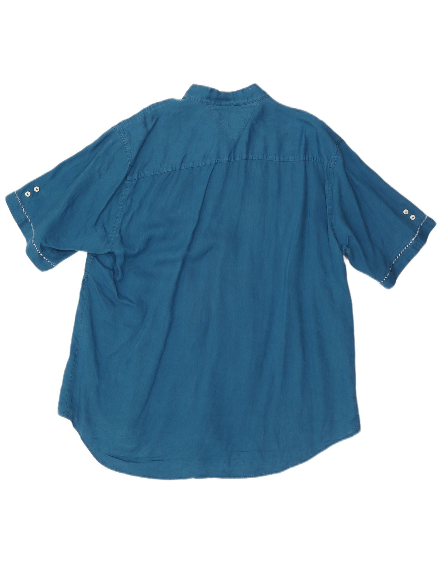 TOMMY HILFIGER Camisa de manga corta para hombre 2XL Algodón a cuadros azul
