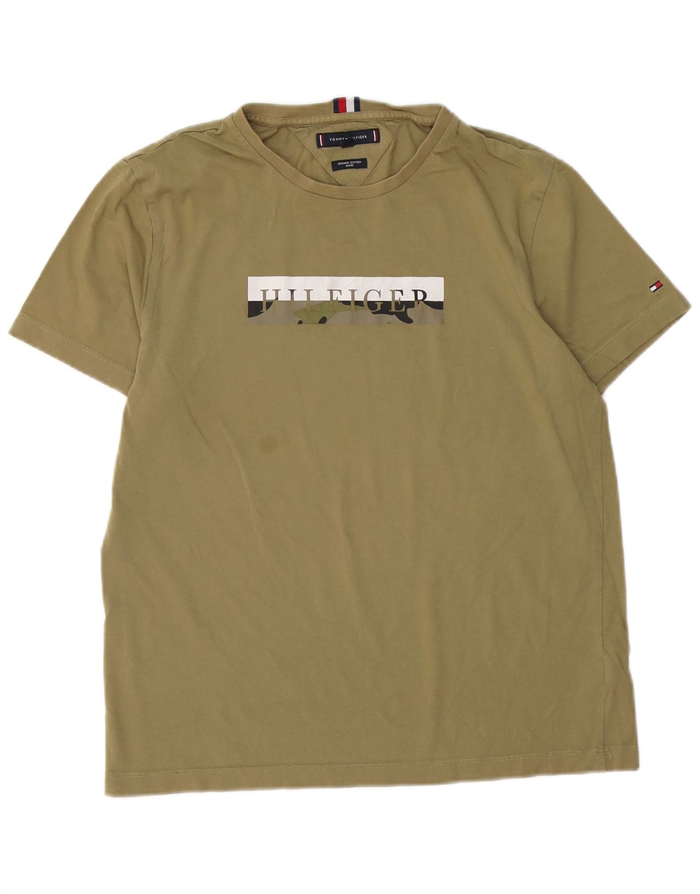 TOMMY HILFIGER Camiseta gráfica para hombre Top Medium Khaki Cotton